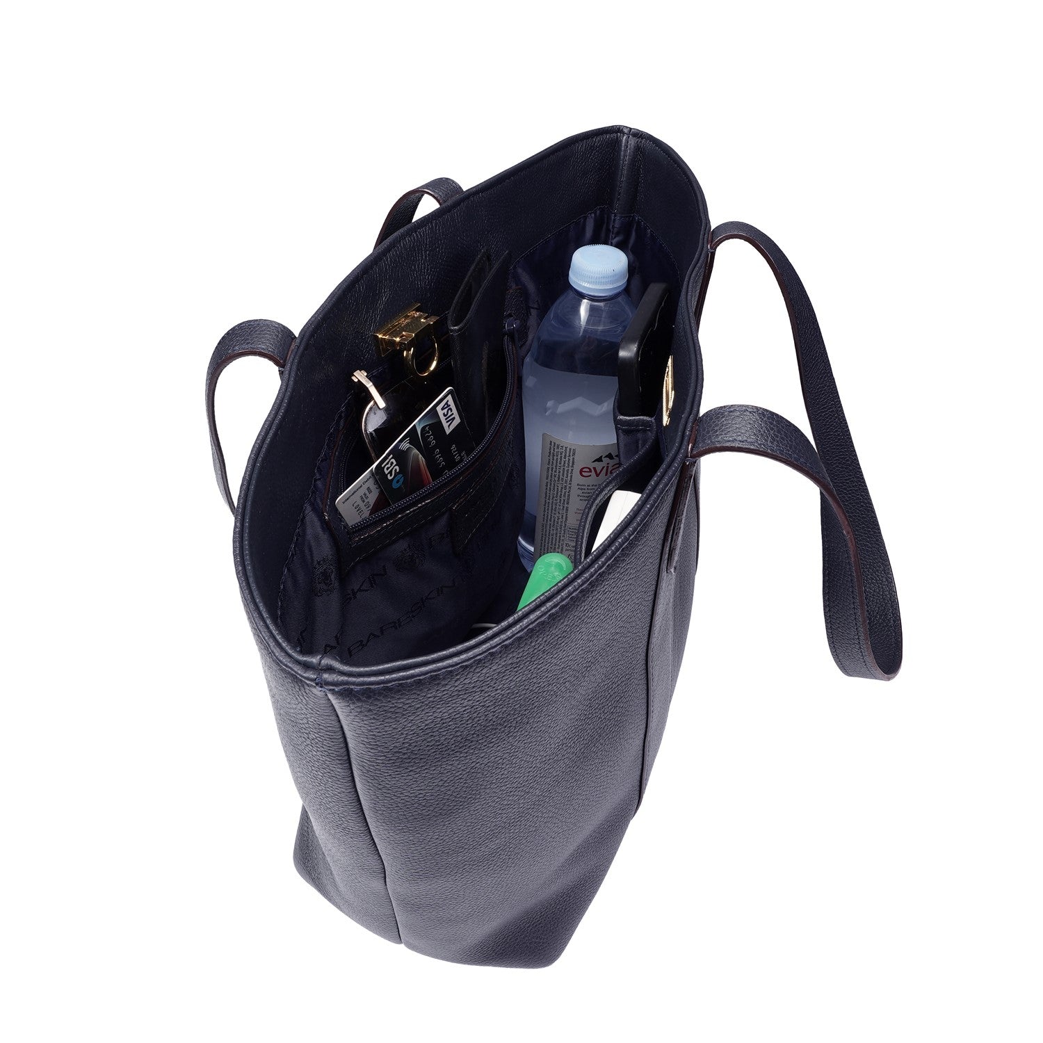 Made from premium textured blue leather, this handbag boasts a soft, smooth finish with subtle grain patterns that reflect fine craftsmanship. At the center of its charm lies a golden metal clasp with a classic turn-lock closure, adding a luxurious accent while ensuring your belongings are secure. The structured silhouette provides a polished look without compromising on convenience, making it an ideal companion for work, brunch, or evening events.