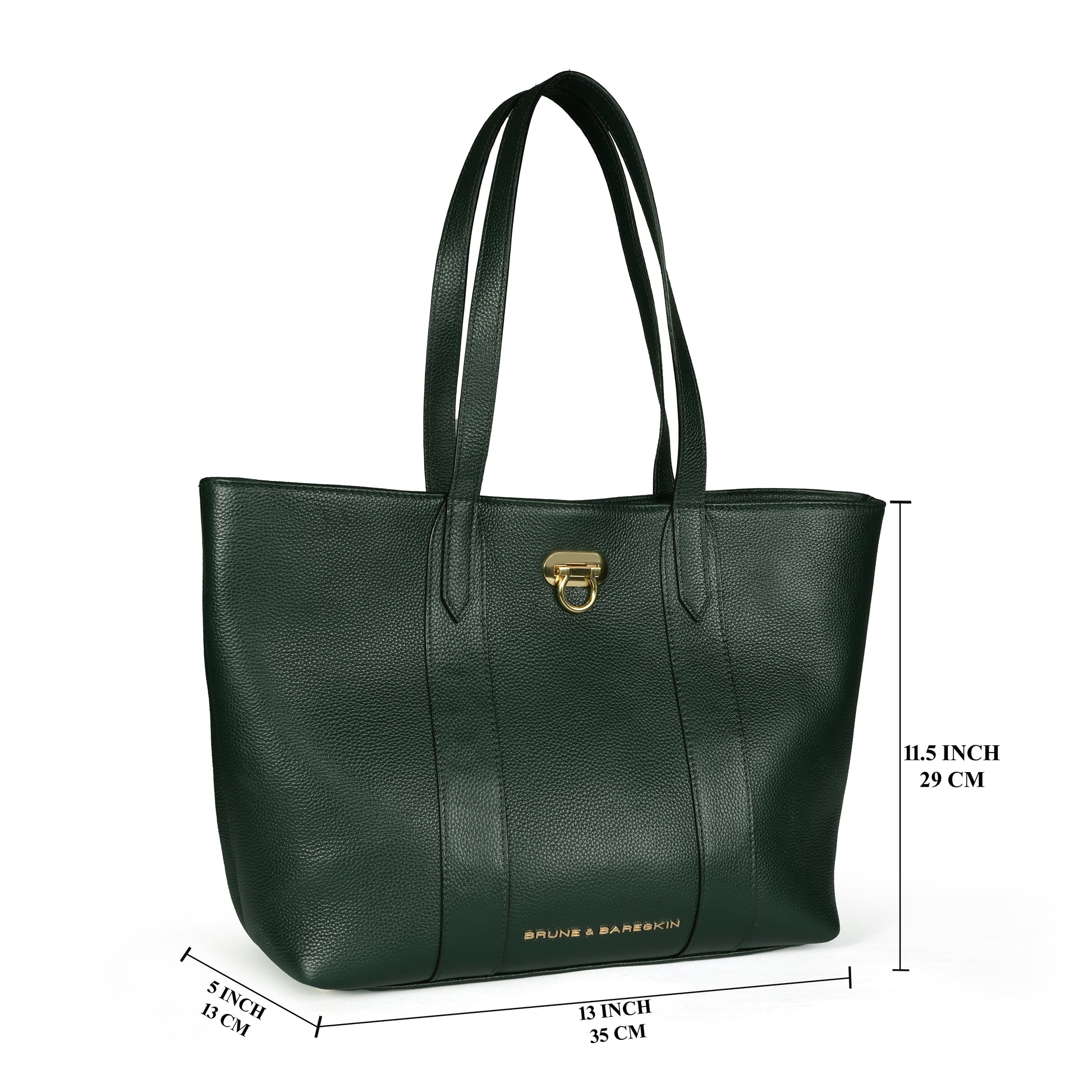 Made from premium textured green leather, this handbag boasts a soft, smooth finish with subtle grain patterns that reflect fine craftsmanship. At the center of its charm lies a golden metal clasp with a classic turn-lock closure, adding a luxurious accent while ensuring your belongings are secure. The structured silhouette provides a polished look without compromising on convenience, making it an ideal companion for work, brunch, or evening events.