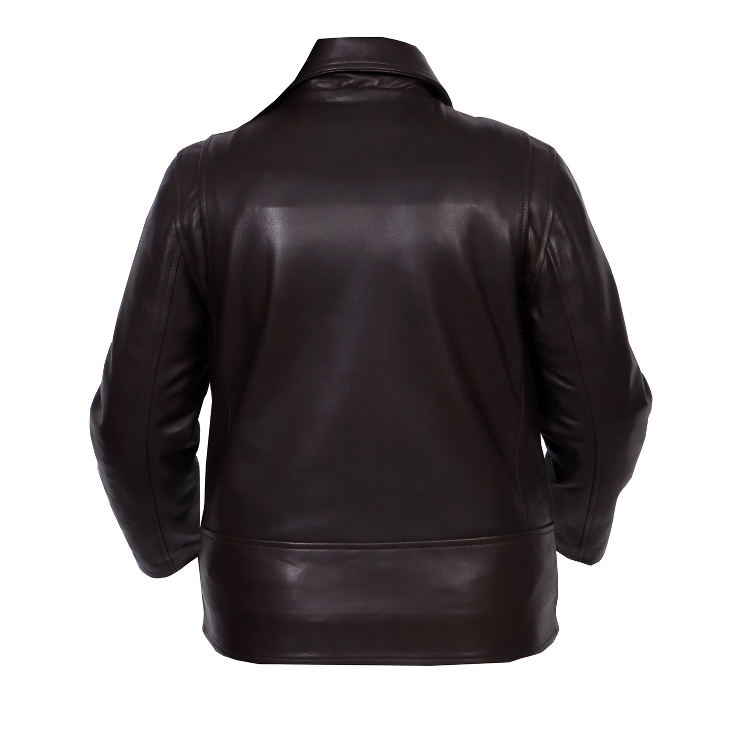 Classic Dark Brown Leather Jacket with Gunmetal Accessory