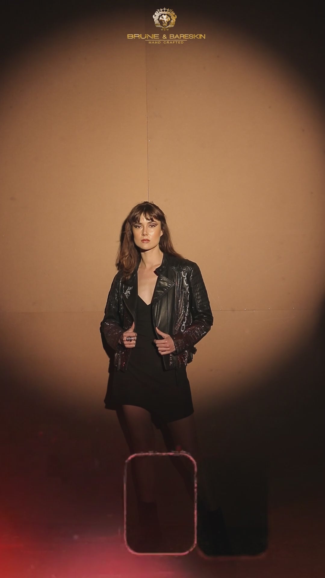 Padded Sleeves Biker Hand-paint design leather Jacket for Ladies By Brune & Bareskin