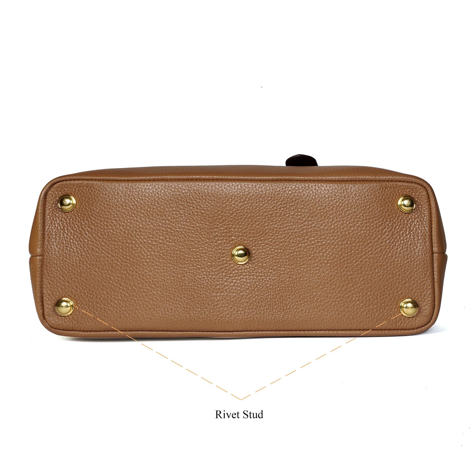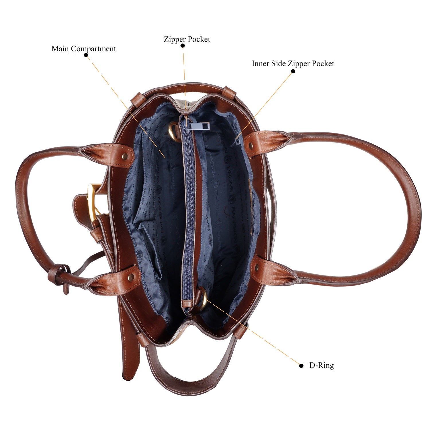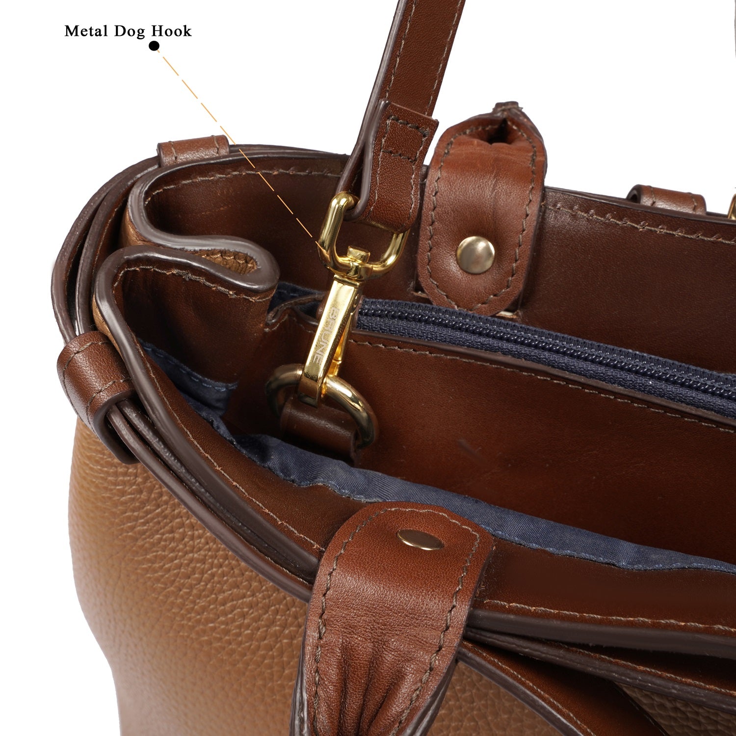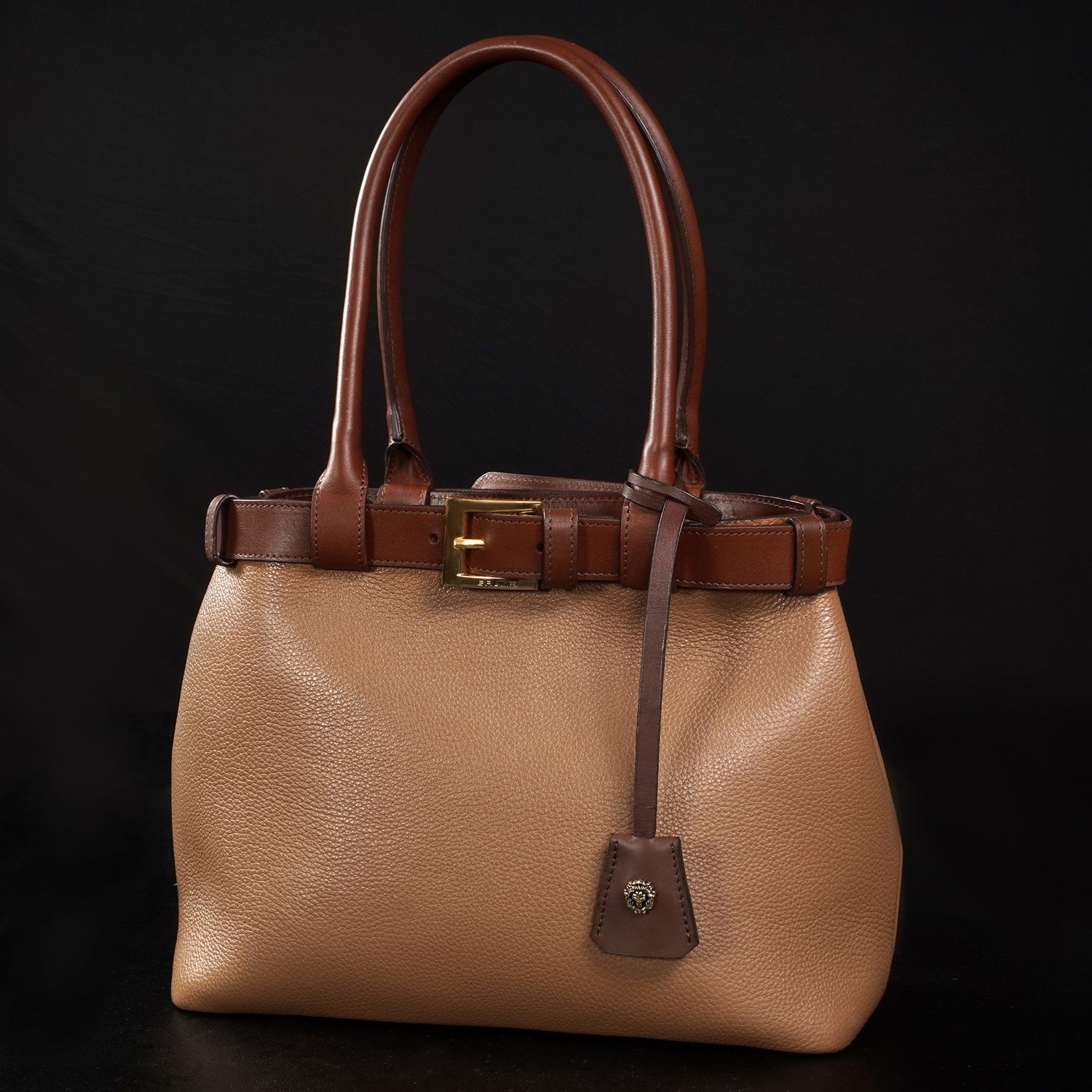 Classic Tan Textured Leather Handbag with Dual-Tone Belt Detailing