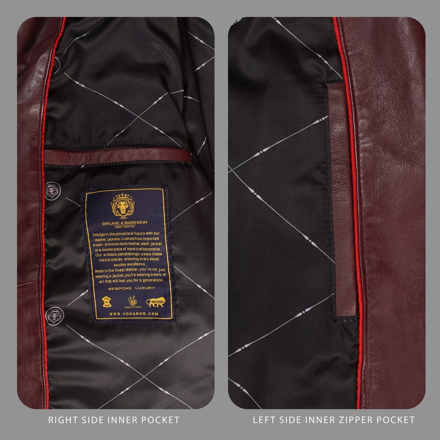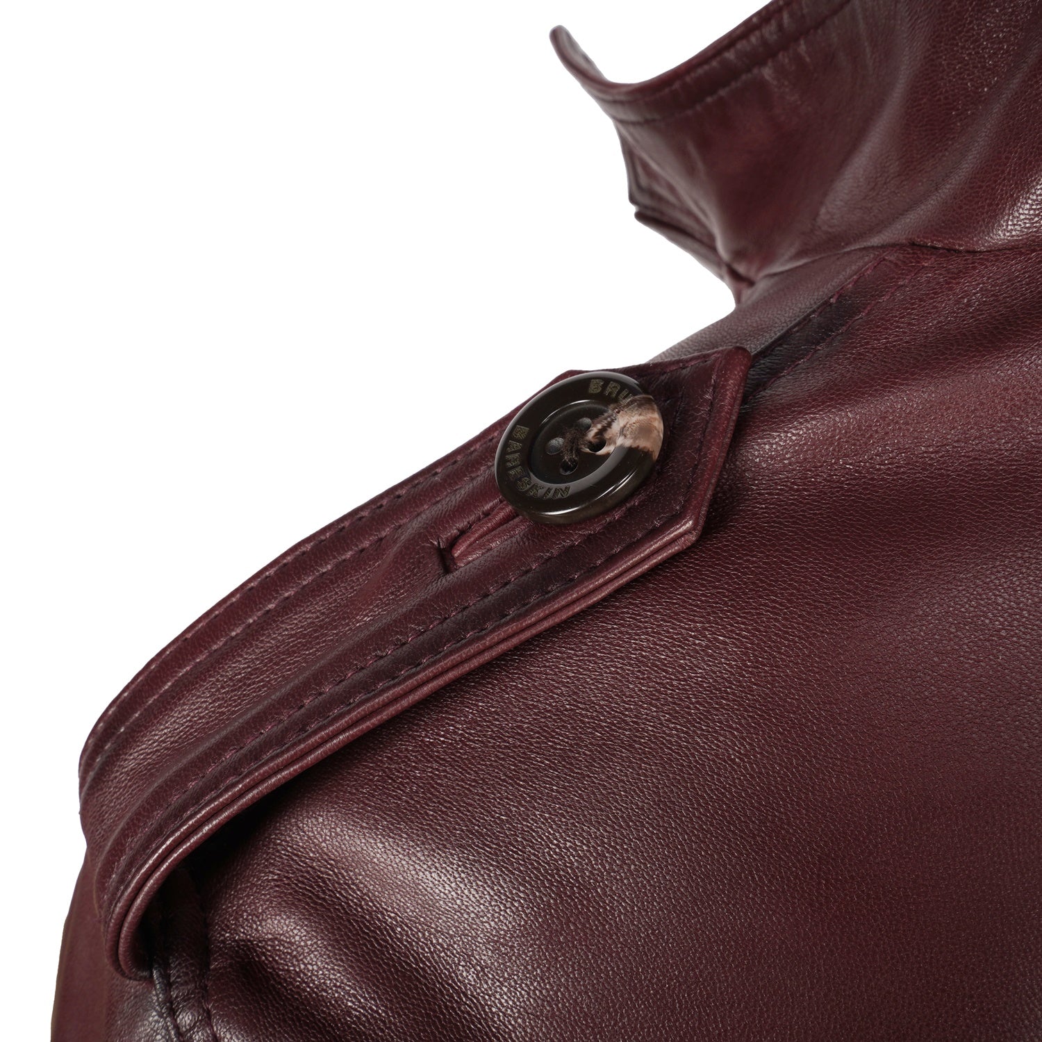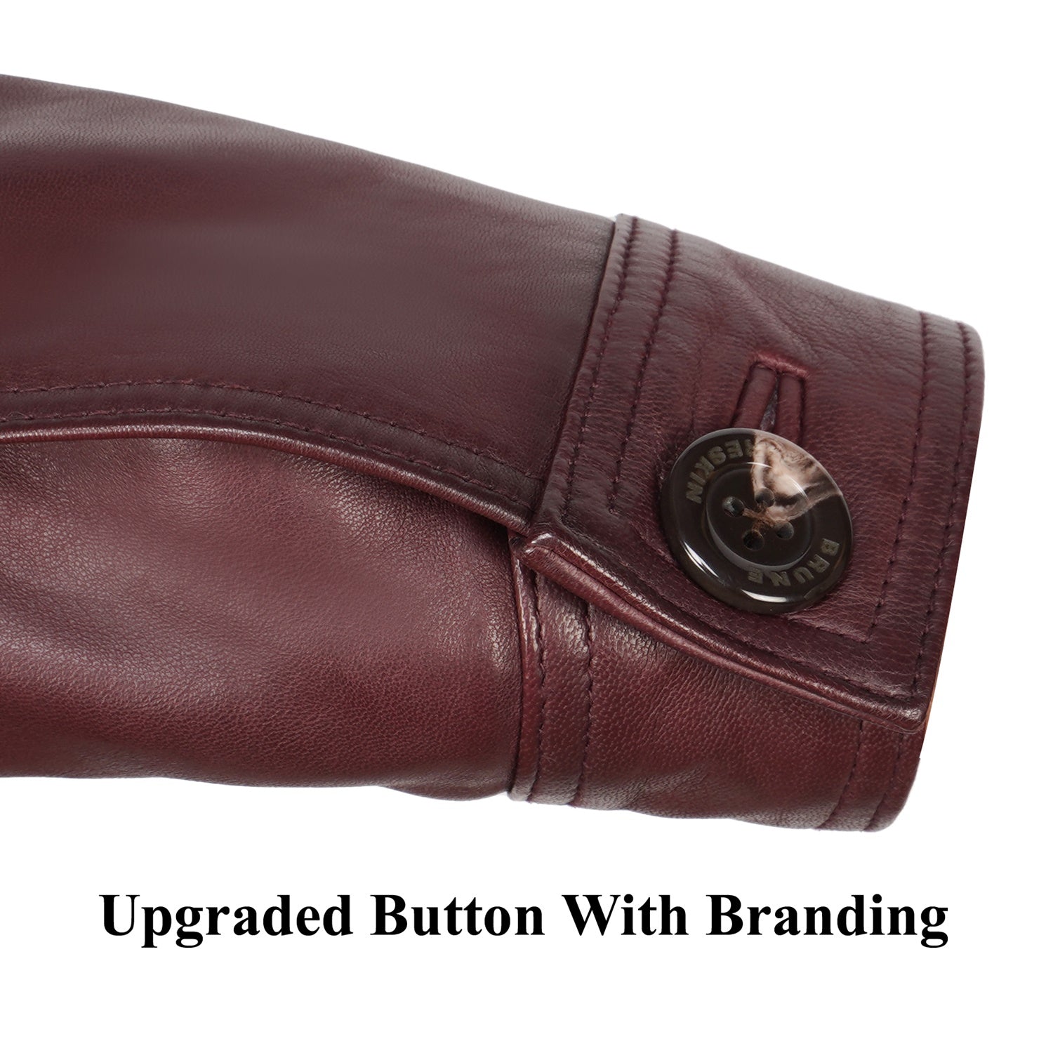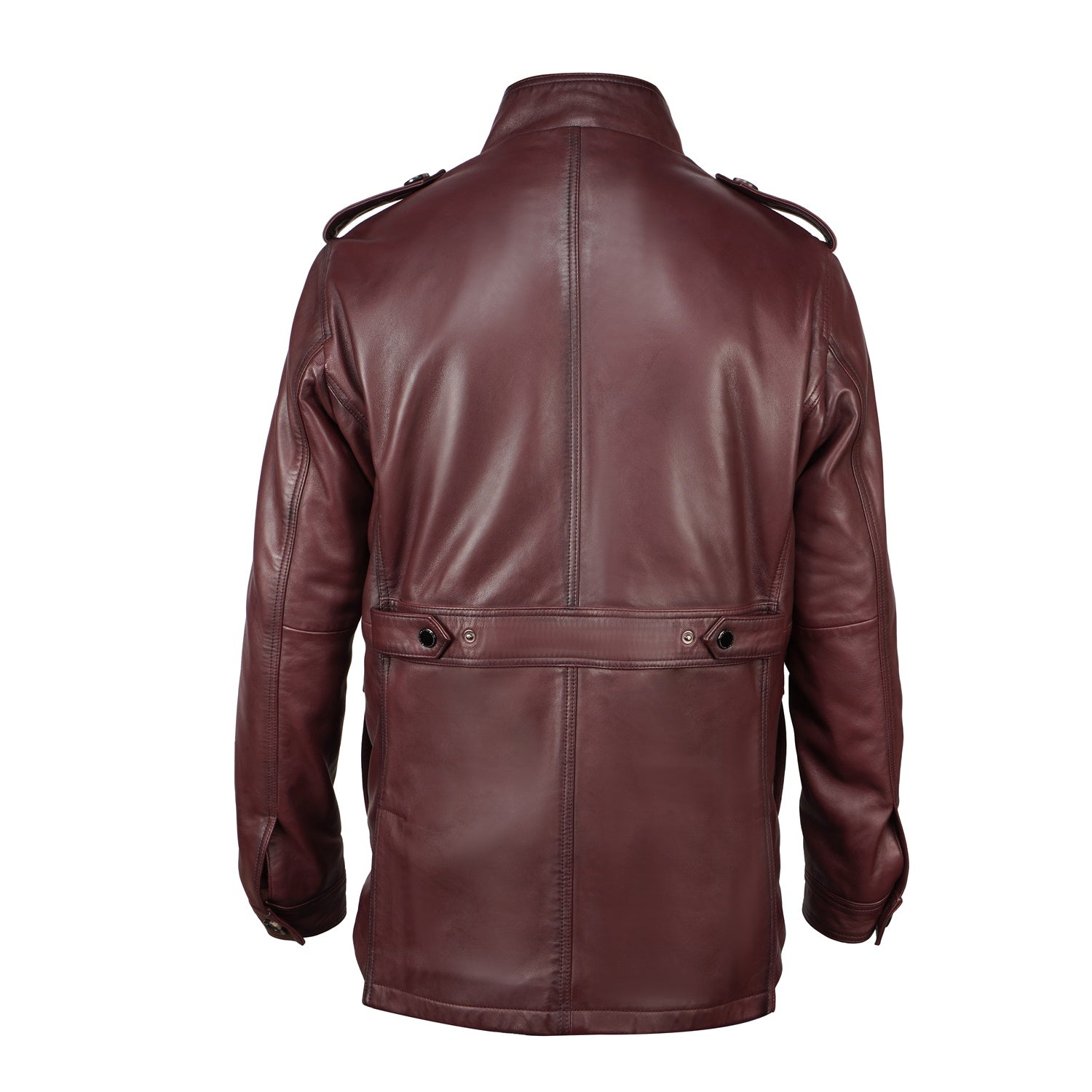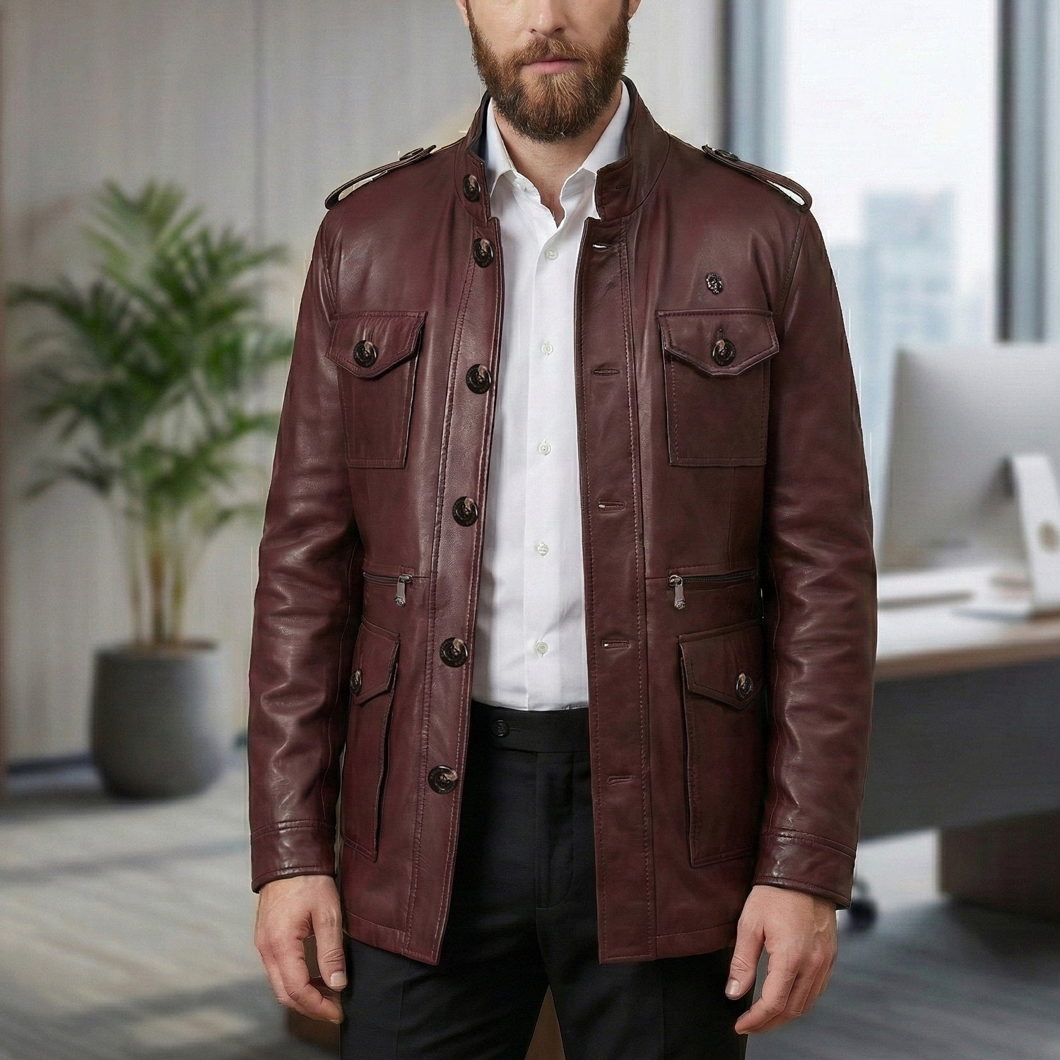 Get ready to conquer the urban jungle in style with the Safari Jacket in dark brown Leather by Brand Brune & Bareskin! Handcrafted from genuine leather, this stylish shirt-style jacket features multiple flap pockets, front button detailing, and a gun metal lion logo. Its premium lining, concealed internal pockets, and front hidden zipper closure offer both warmth and style. Upgrade your wardrobe with this high fashion field jacket that blends comfort and fashion seamlessly.