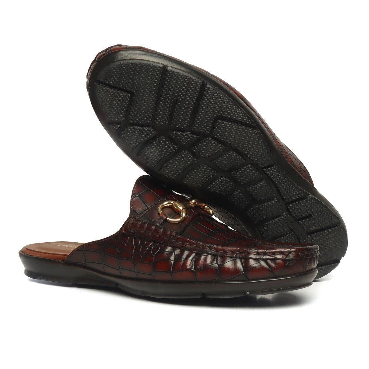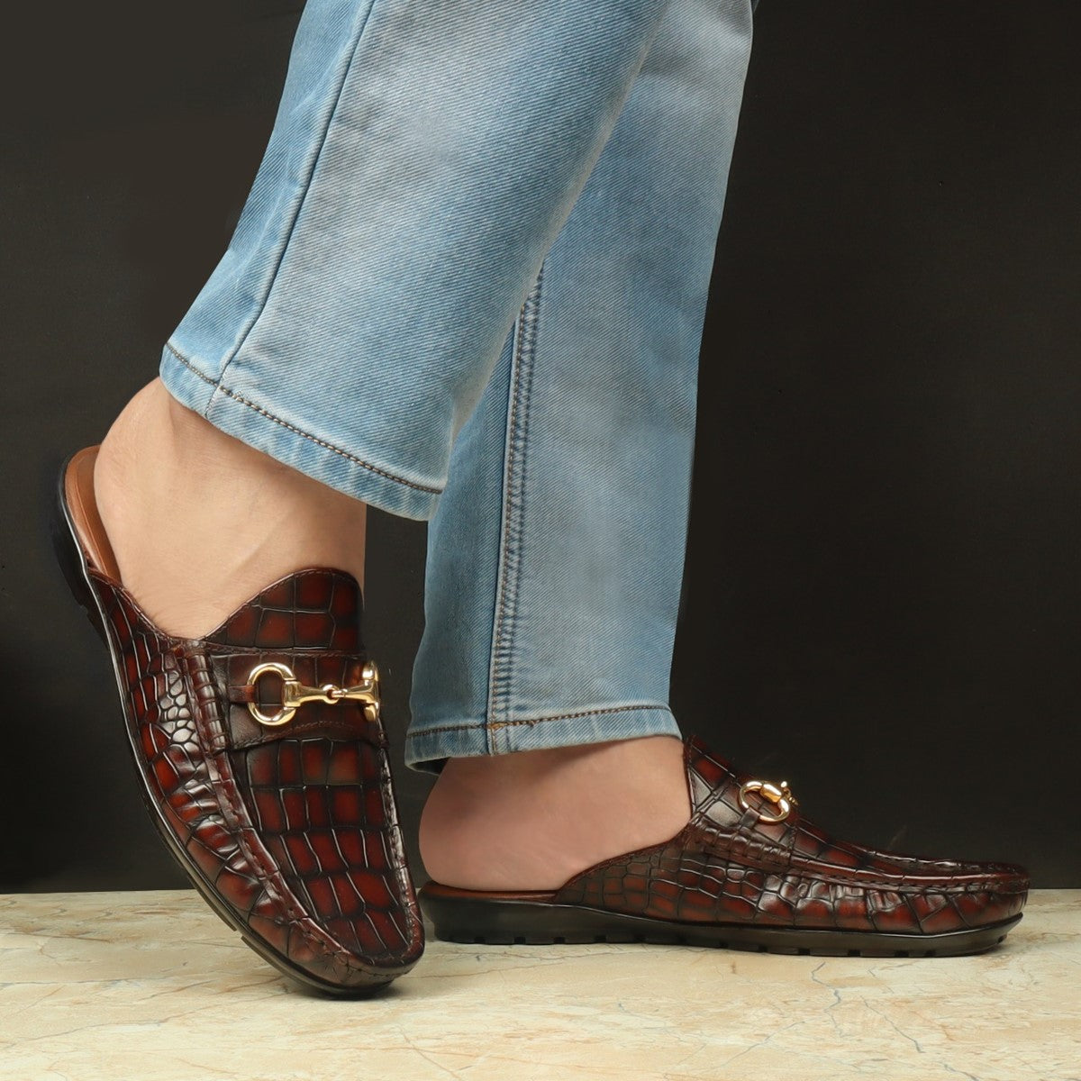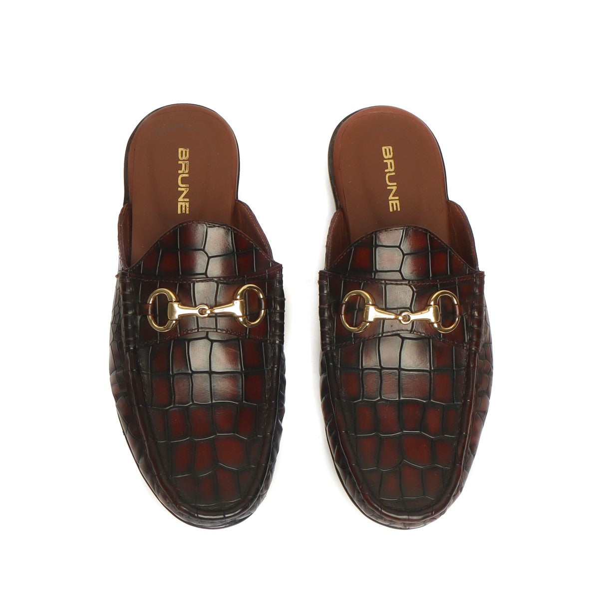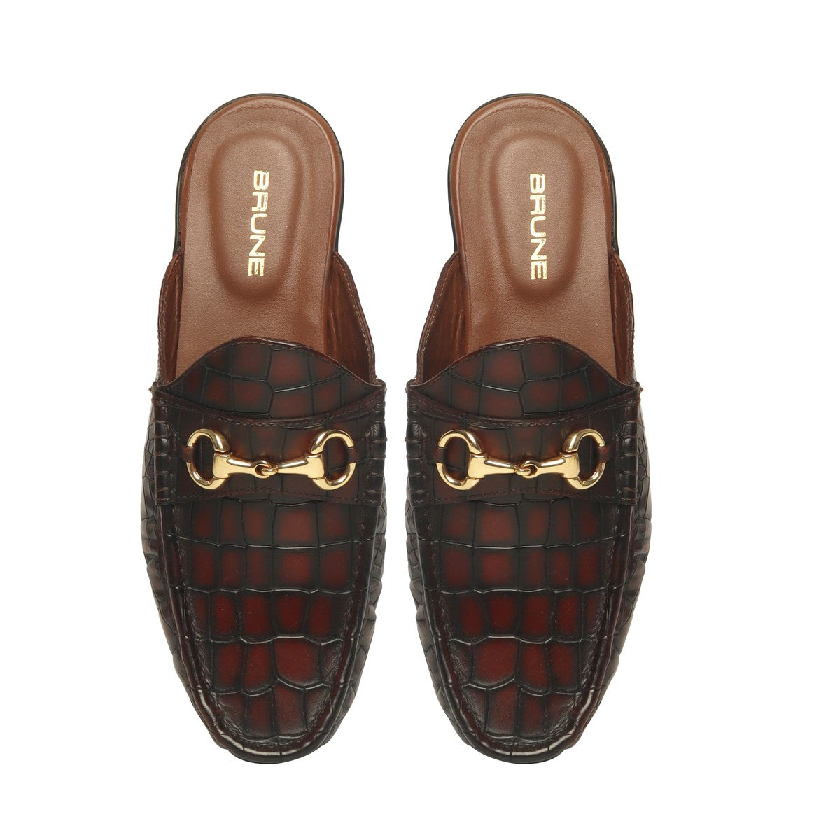 Deep Cut Croco Genuine Leather with Horse-bit detailing Mules are perfect in the work from home scenario. You can wear these at a formal get-together without sacrificing your comfort. These can be customized in a wide array of colors with our bespoke service. The styling makes it as elegant as any BRUNE & BARESKIN shoe would be but still offering the season's special slipper opening to wearability and usability. These are made keeping in mind the style and convenience in mind.