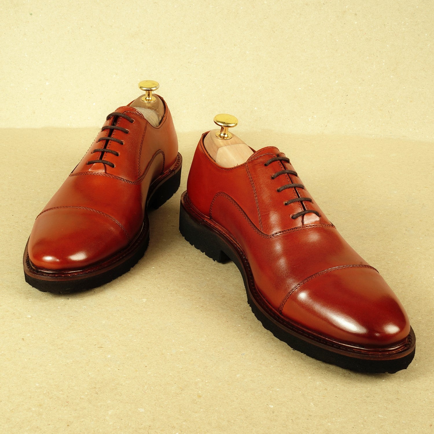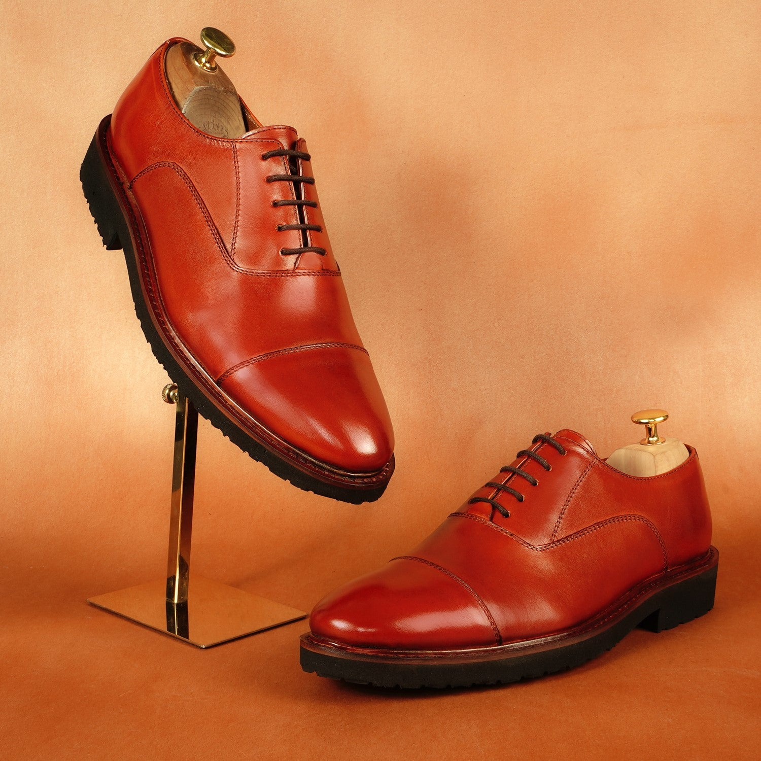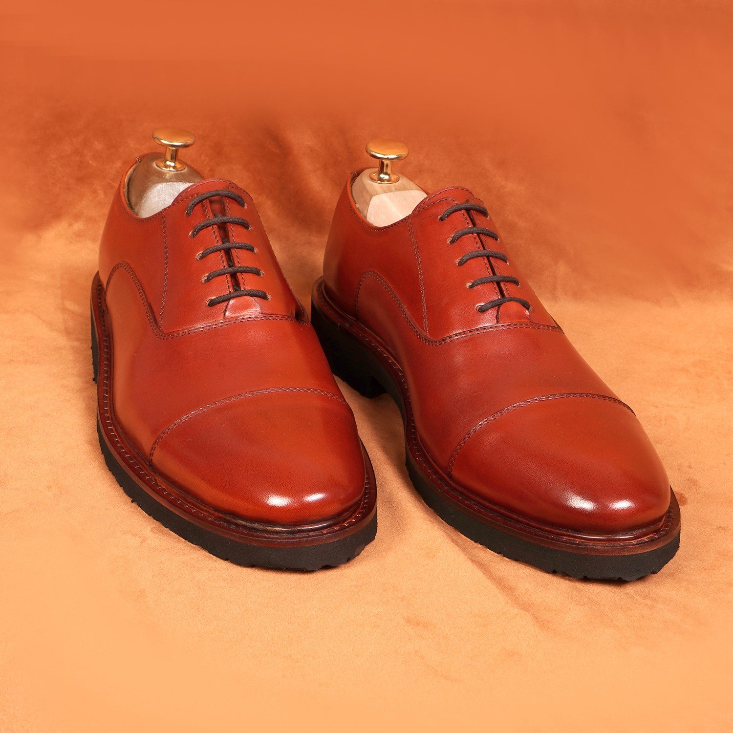 Light Weight Police Uniform Shoe in Cognac Genuine Leather