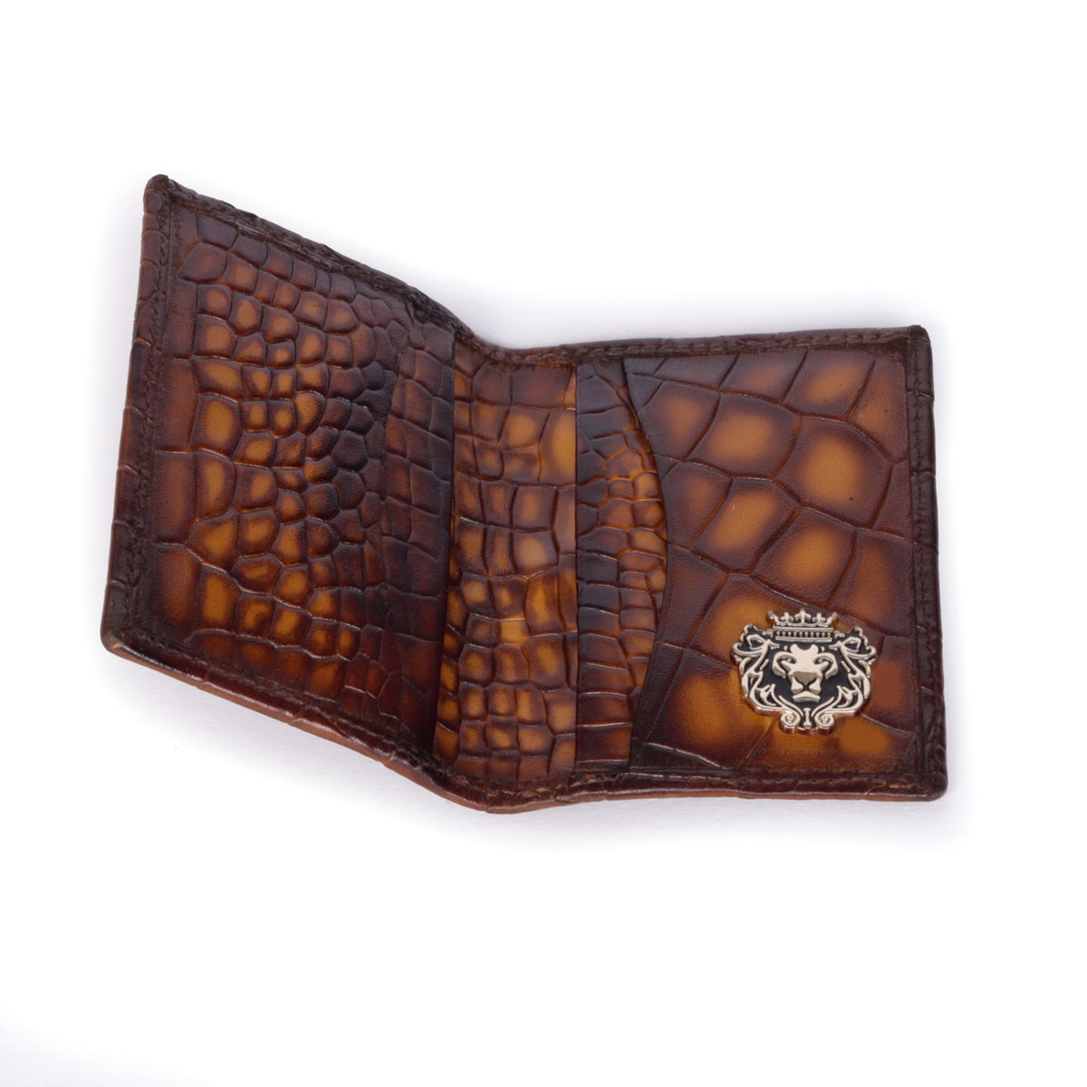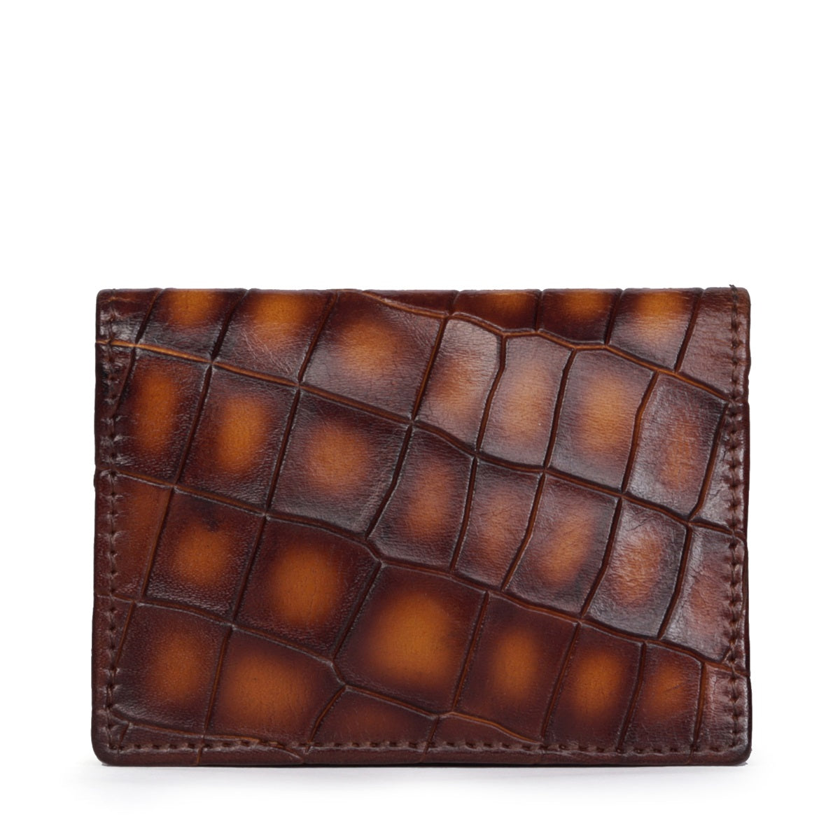 Cognac Smokey Finish Cut Croco Textured Leather Card Holder