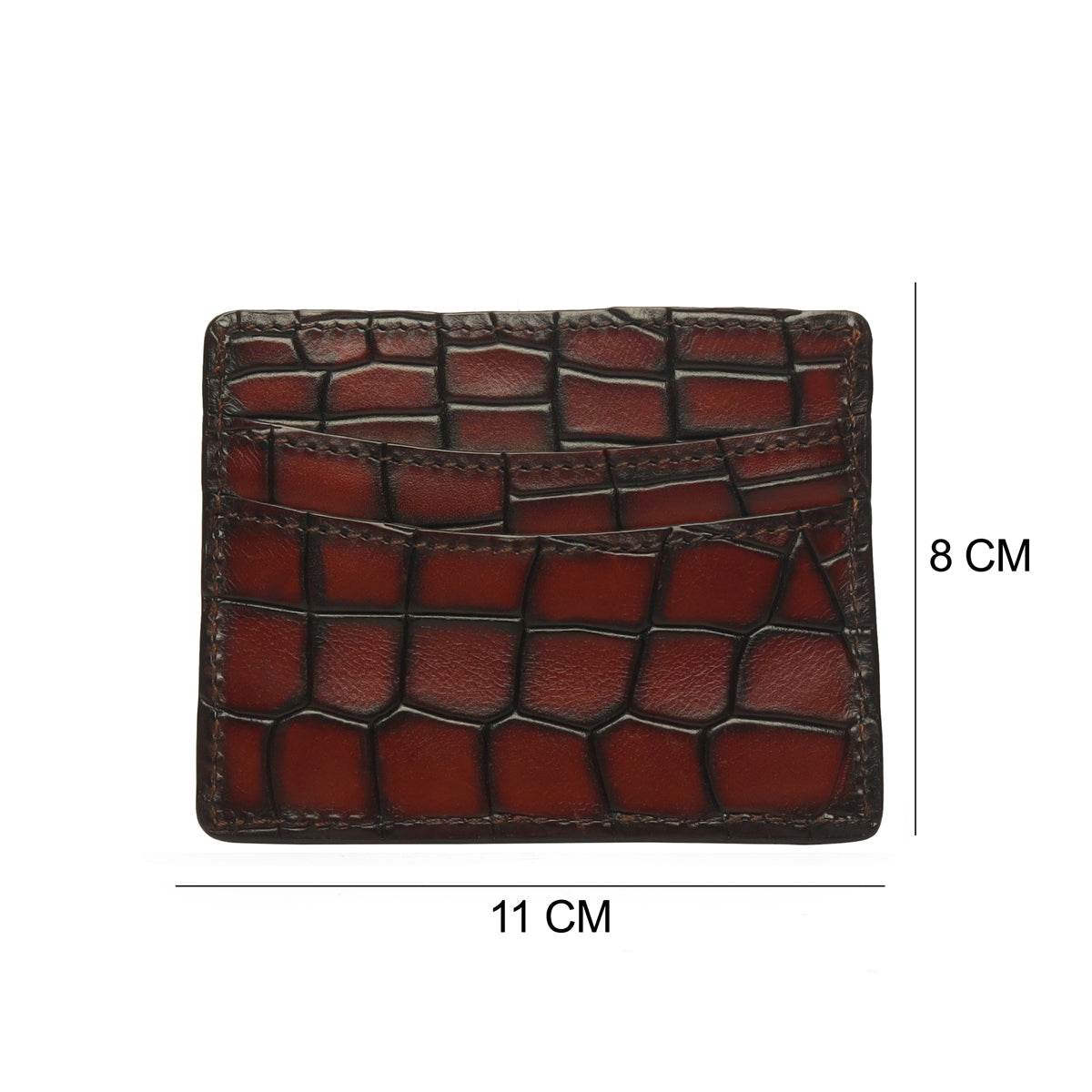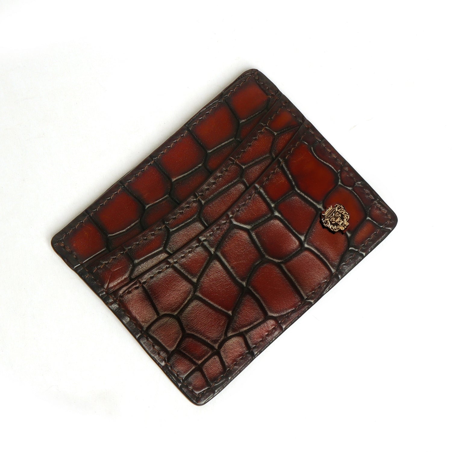 Cognac Smokey Patina Finish Card Holder in Deep Cut Croco Leather by Brune & Bareskin