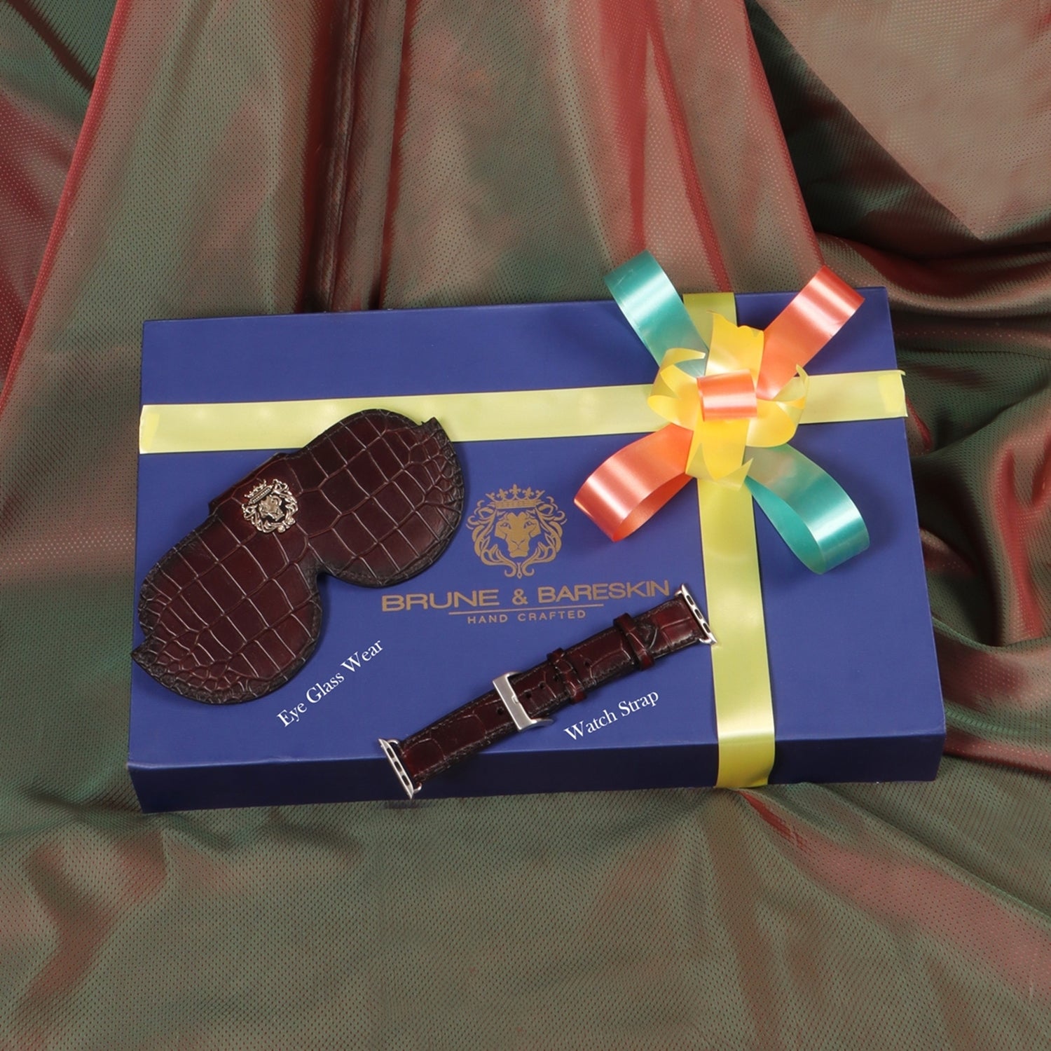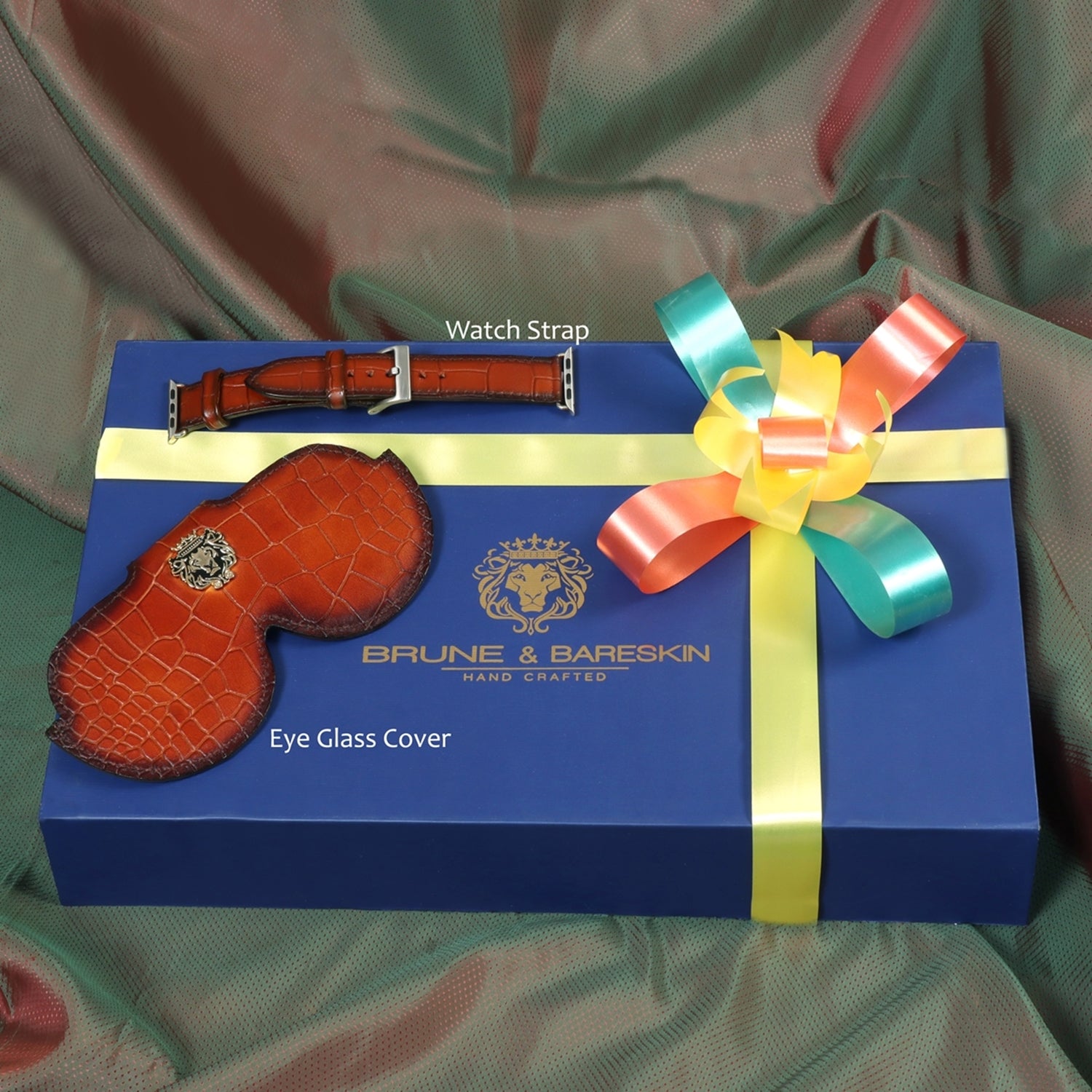 Combo of Croco Print Leather Eyewear Cover and Watch Strap With Metal Lion Logo By Brune & Bareskin