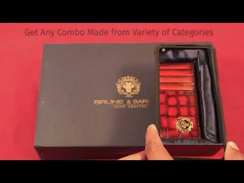 The latest croco textured leather Accessories are made to give you an extra style edge. The elegant combo you would love to have. This is a must have combination of products to carry. The perfect Men's Wallet and Card Holder will complete your look. The BRUNE & BARESKIN signature metal Lion brand logo increases the style quotient. The men wallet along and unisex card holder is a perfect pair of products to carry or gifting. The card holder can also be use by women, girls. You can customize this further in your favorite color and also add the name initials. Our Bespoke service make it a perfect gifting combo for the gentlemen. What are you waiting for? You can click on CUSTOMIZE NOW Button (Just above the "ADD TO CART" button) & fill the form to submit your customization requirements. Or you can reach us by Call, Email, WhatsApp, and DM.