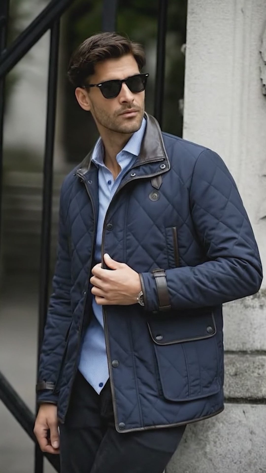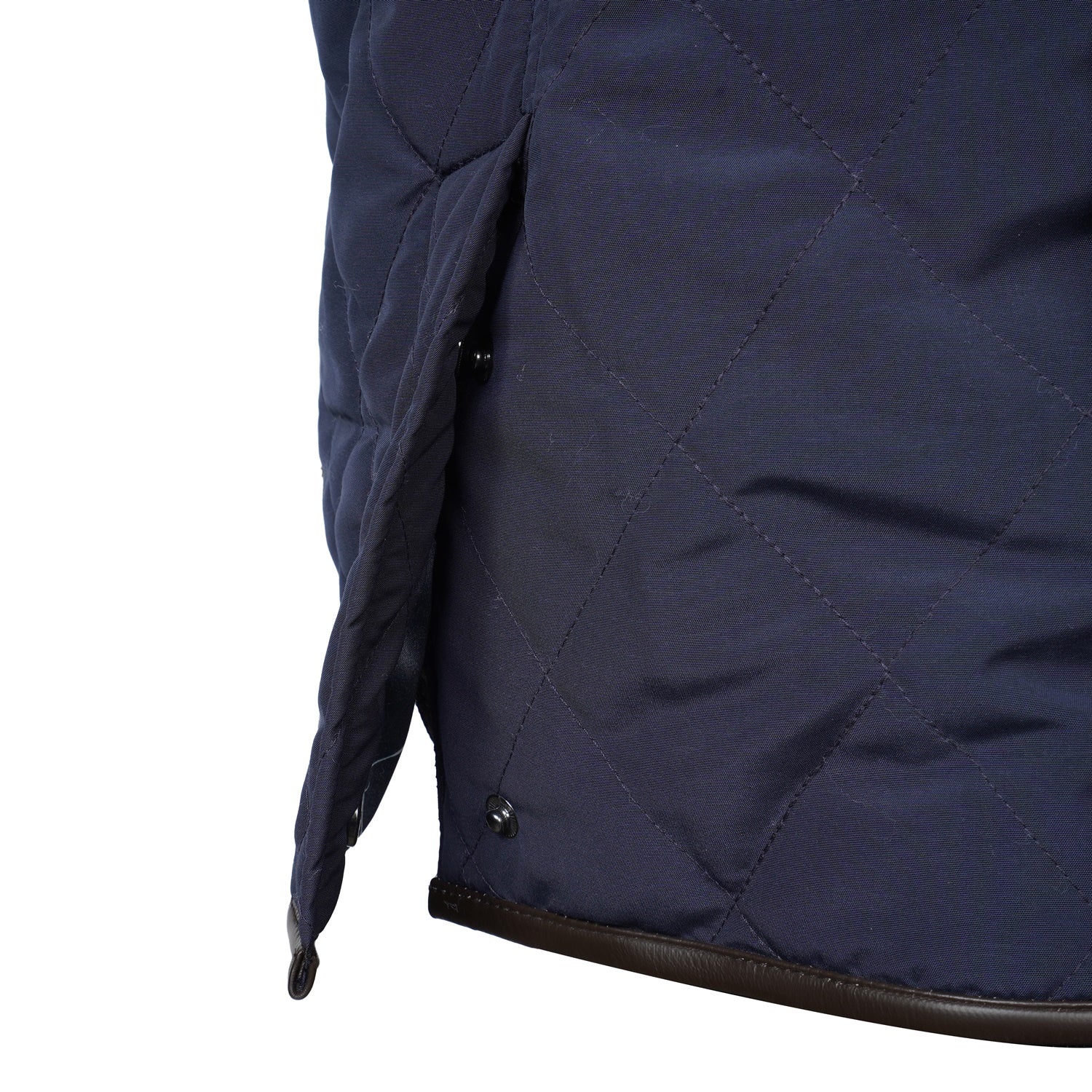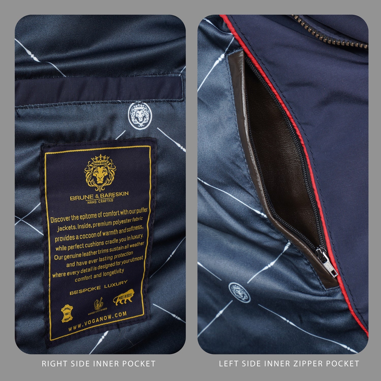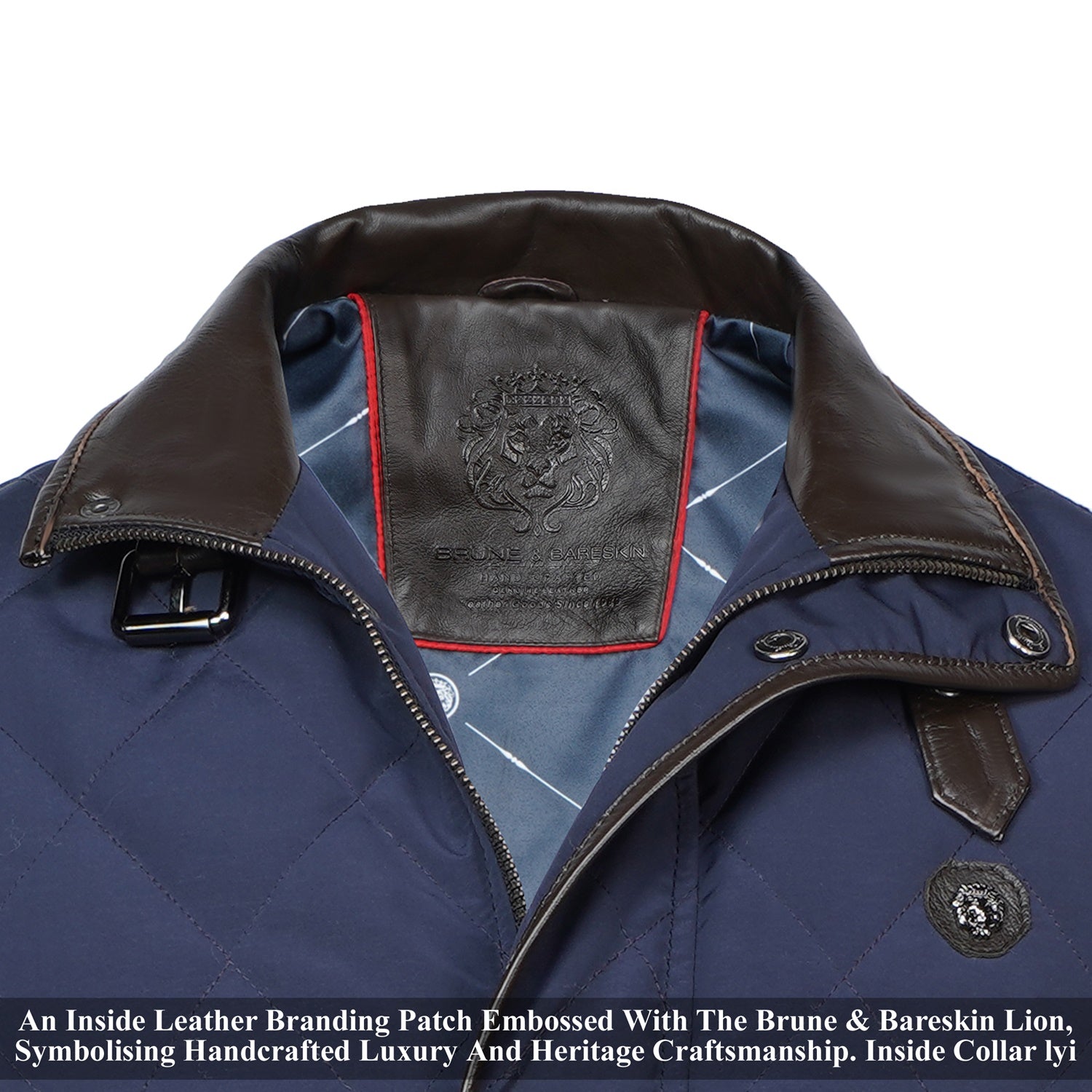 This men's Blue puffer coat jacket will keep you warm in style. Crafted from ultra-soft materials, the jacket has diamond stitching and contrasting dark brown leather trims at the neck, arms, and pockets. With its adjustable neck belt strap and multiple pockets, this jacket is the perfect blend of both functionality and luxury.