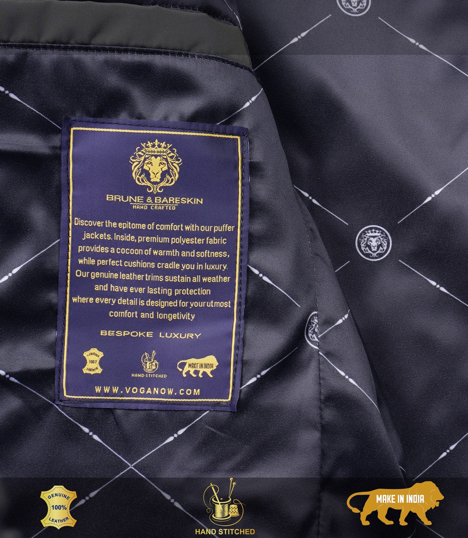 Contrasting Green-Dark Brown Puffer Coat Jacket by Brune & Bareskin