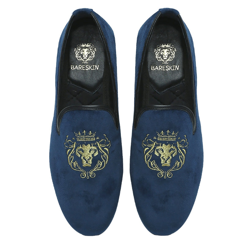 An elegant pair of Copper Brown slip on shoes is a must-have for every well dressed man. This smooth Leather/Velvet Copper Brown Slip-on with Golden Lion King Embroidery offered by "BRUNE & BARESKIN" gives an elite style and debonair look. This will be an amazing addition to your collection.