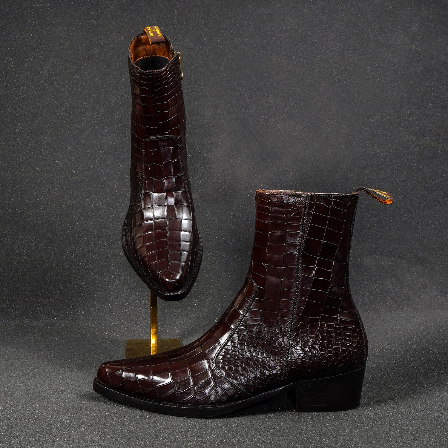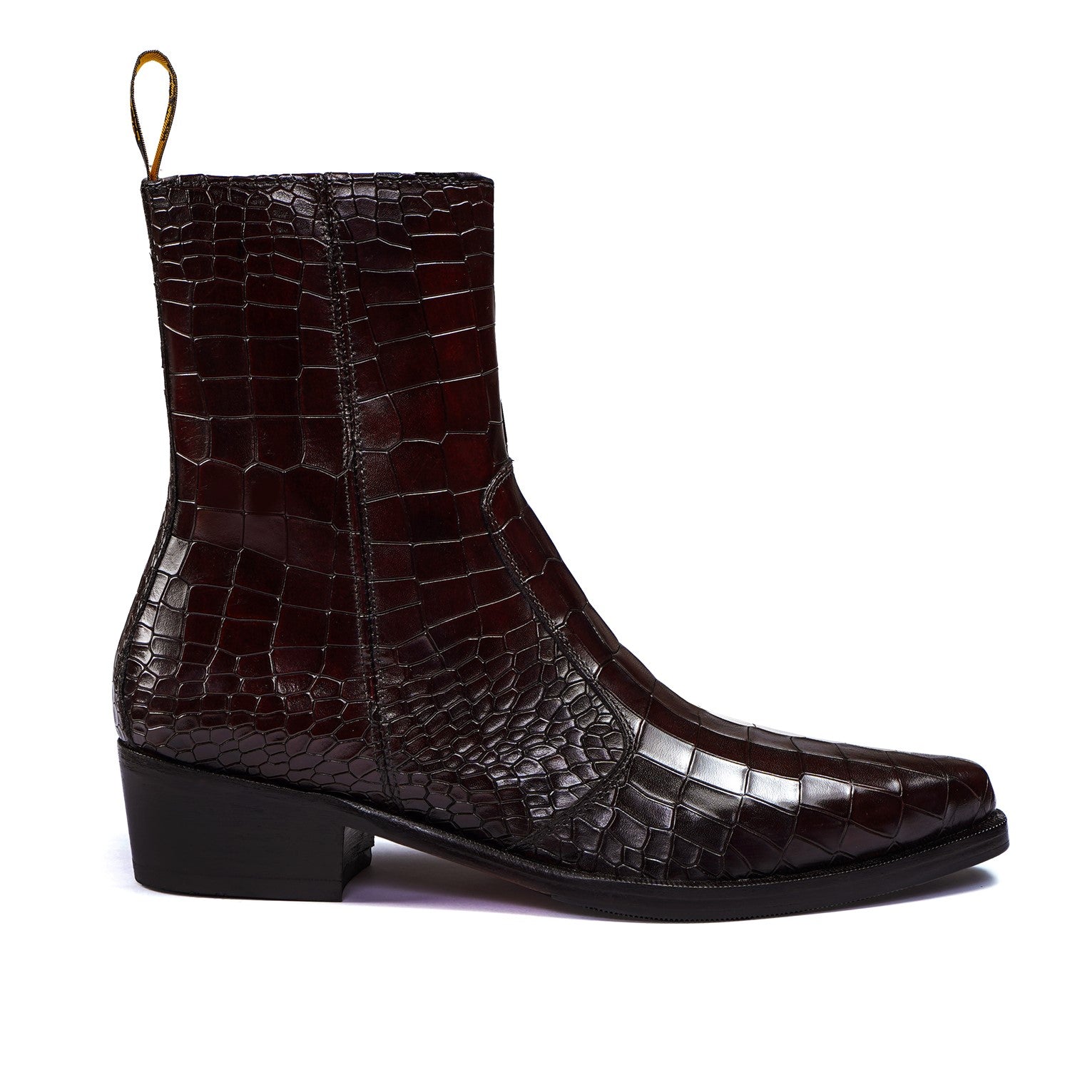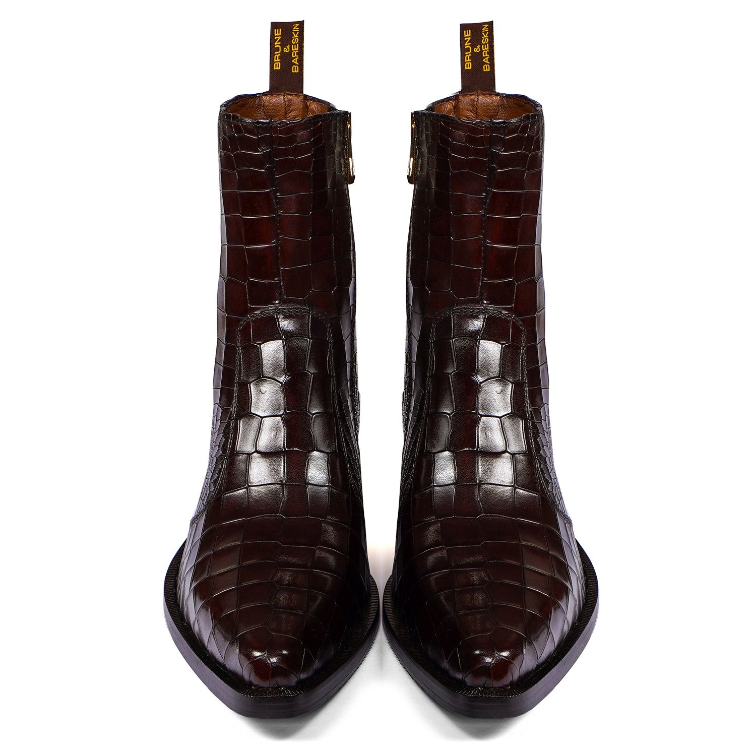 Cowboy Boots Dark Brown Deep Cut Croco Leather Cuban Heel By Brune & Bareskin