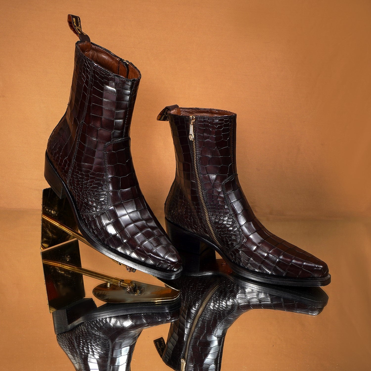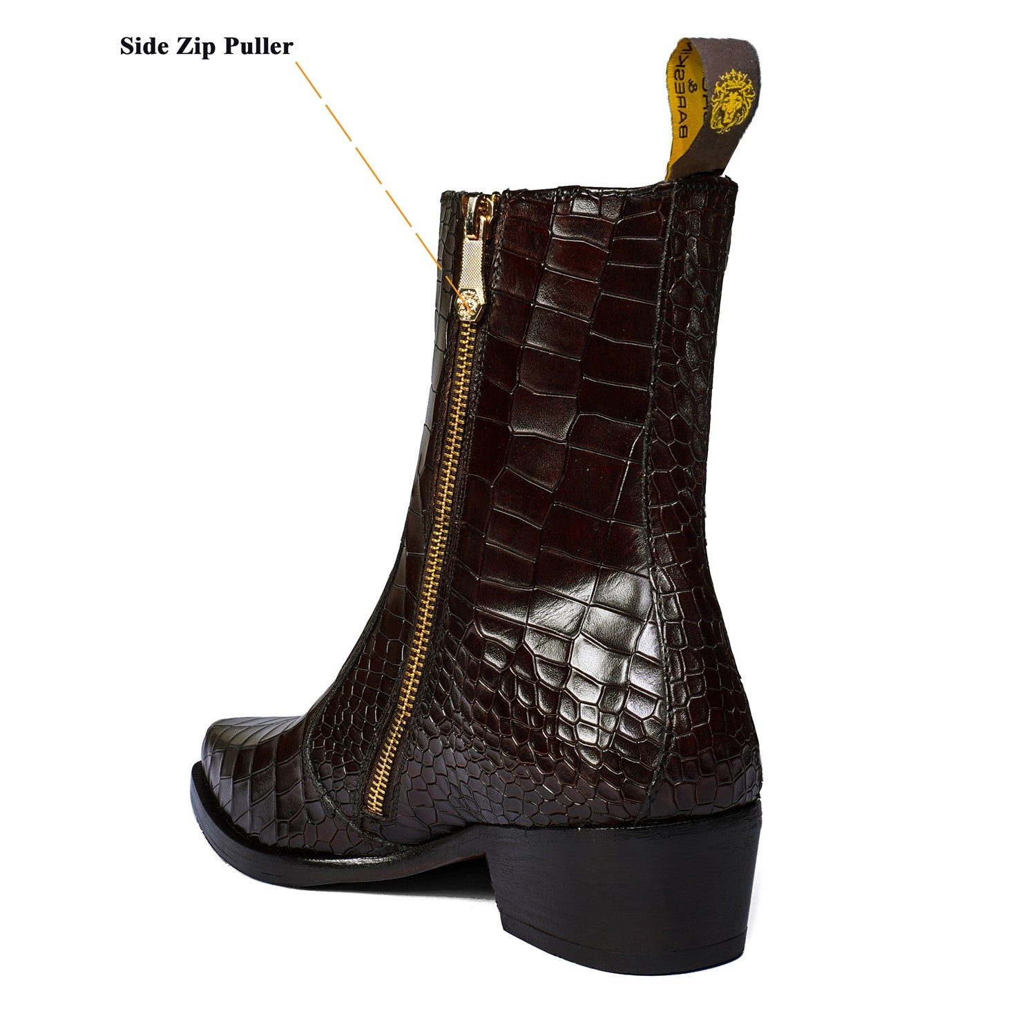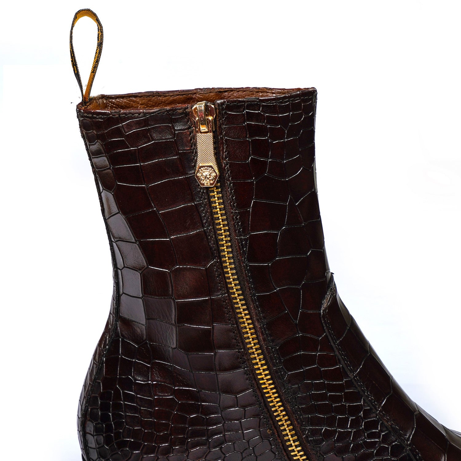 Cowboy Boots Dark Brown Deep Cut Croco Leather Cuban Heel By Brune & Bareskin