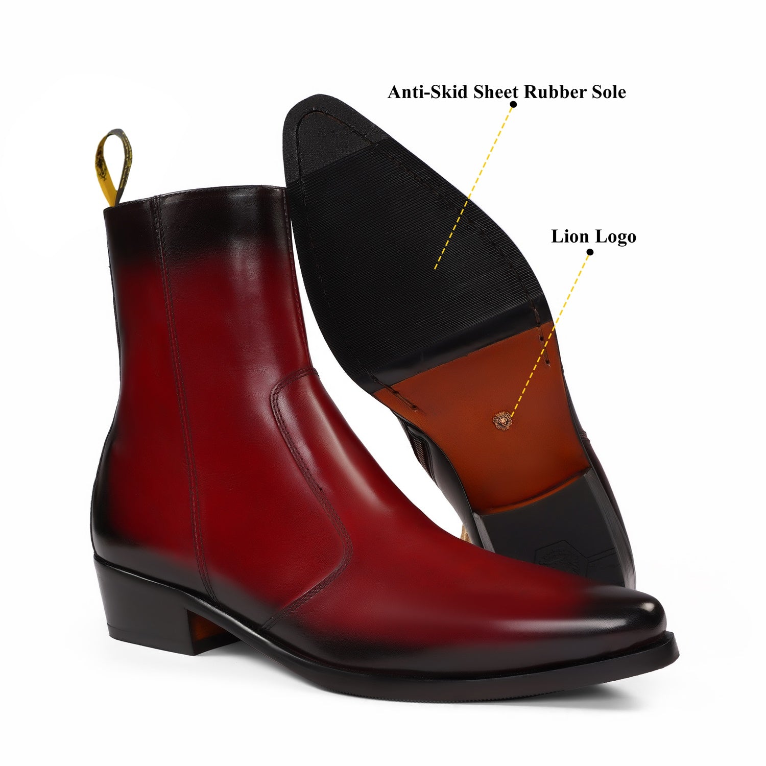 Ankle boot in leather are a dream come true for many a fashion-aware executives. We craft these high ankle wine leather cowboy boots to give you an elite look. This shoe can be customized according to your liking. This Shoe is entirely handcrafted by our expertise.