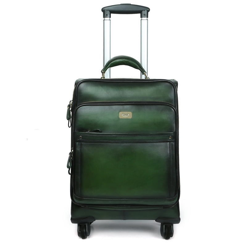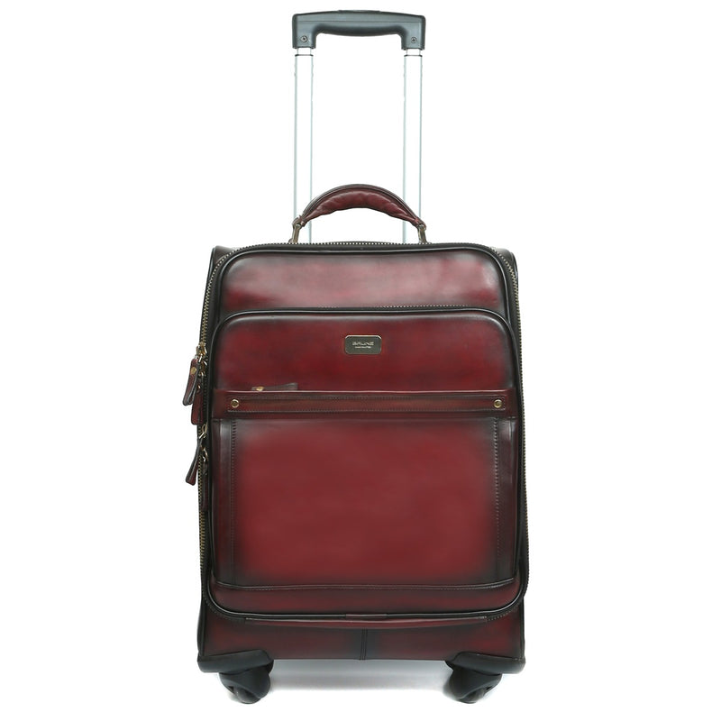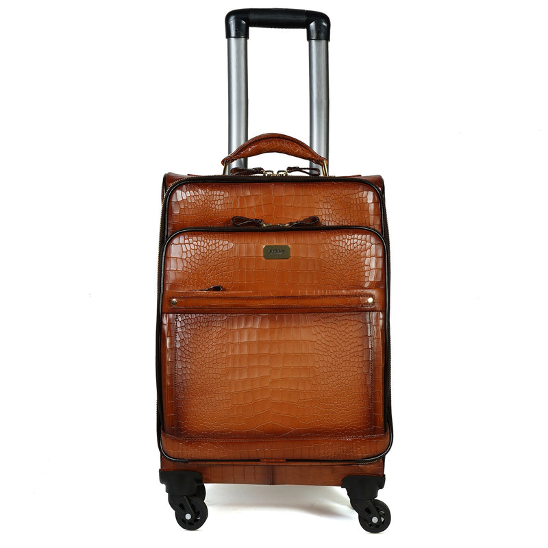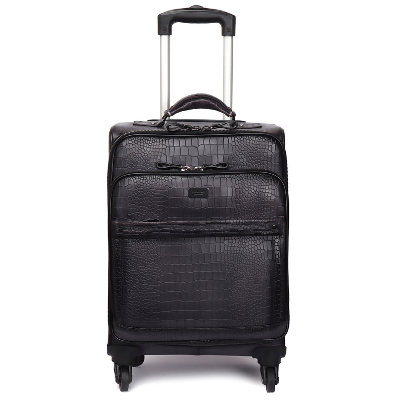 Croco Dark Brown Quad Wheel Cabin Luggage Leather Bag By Brune & bareskin