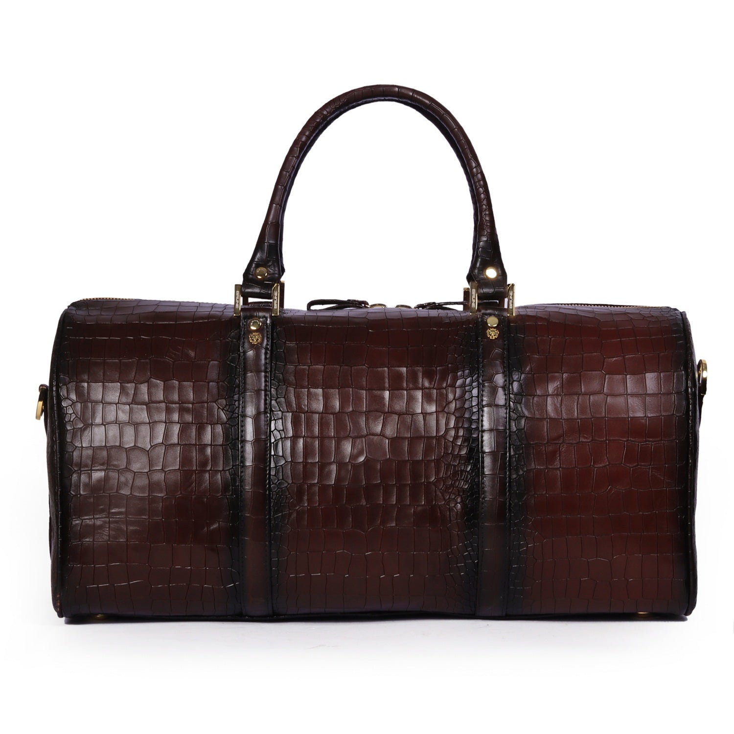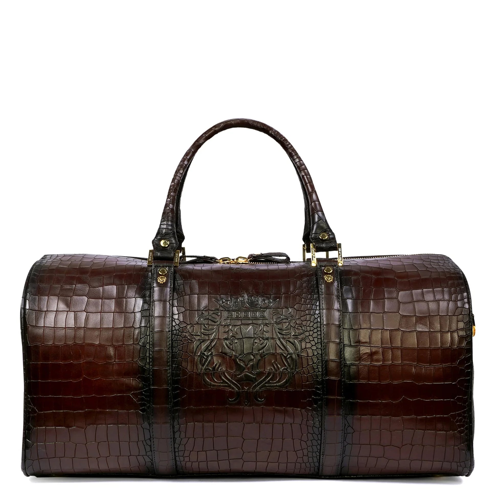 Croco Embossed Duffle Bag in Dark Brown Leather