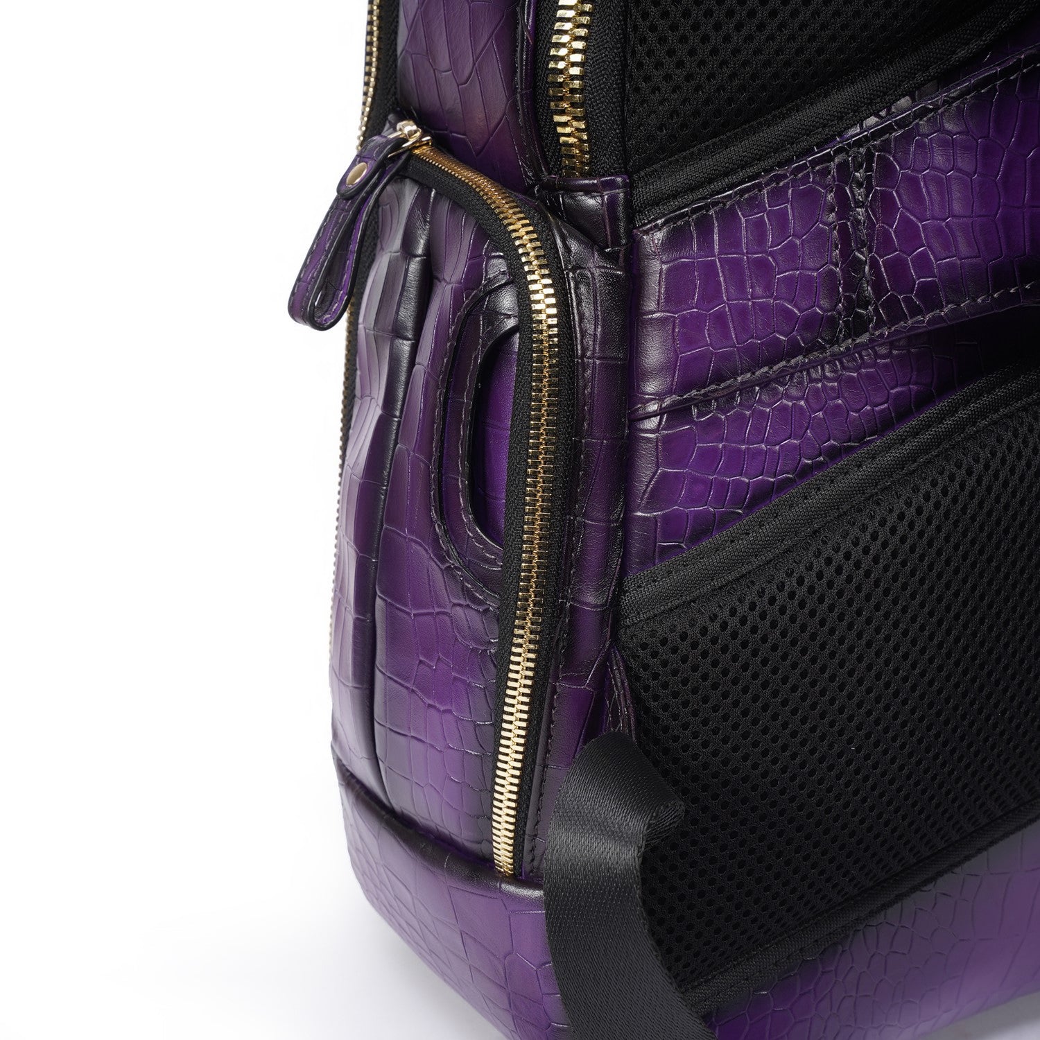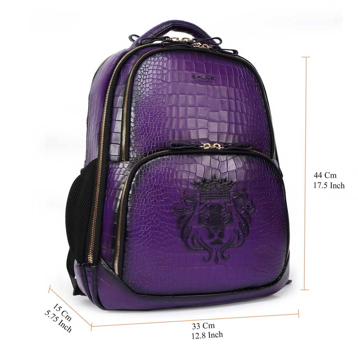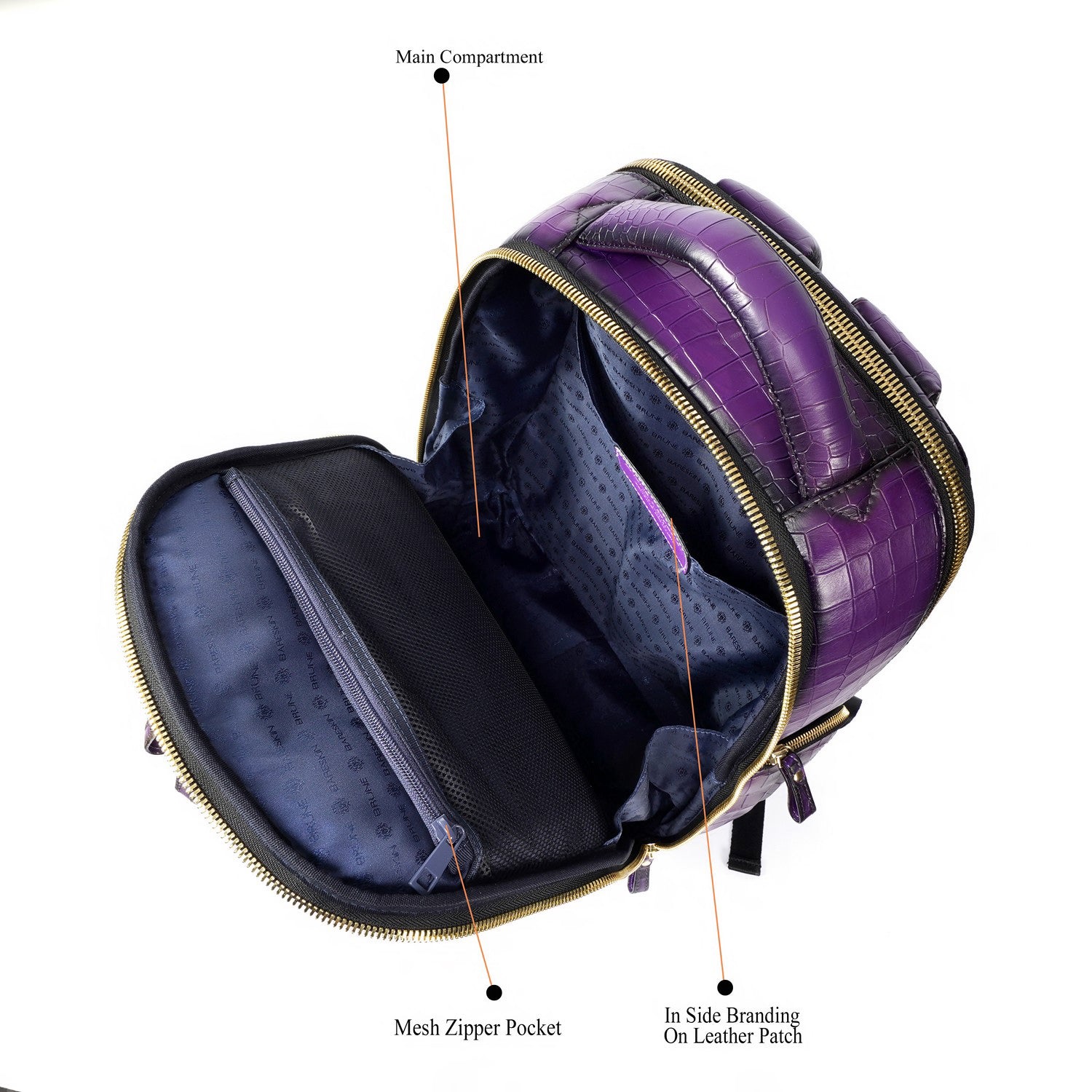 Croco Embossed Purple Leather Backpack With Lion Logo