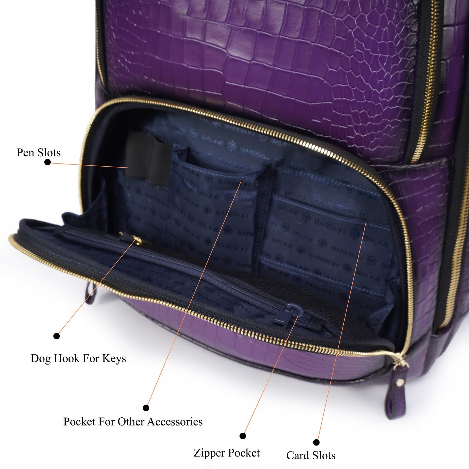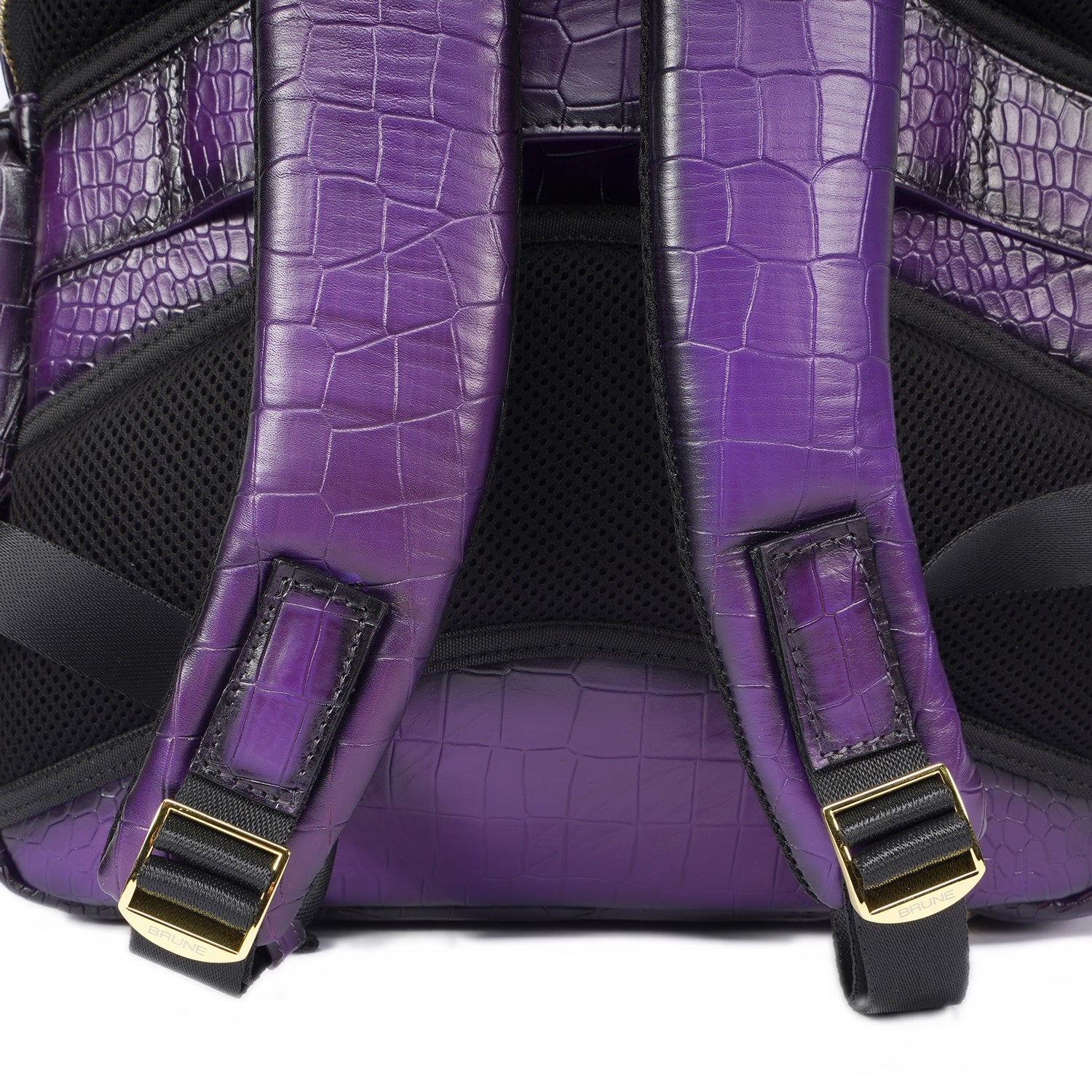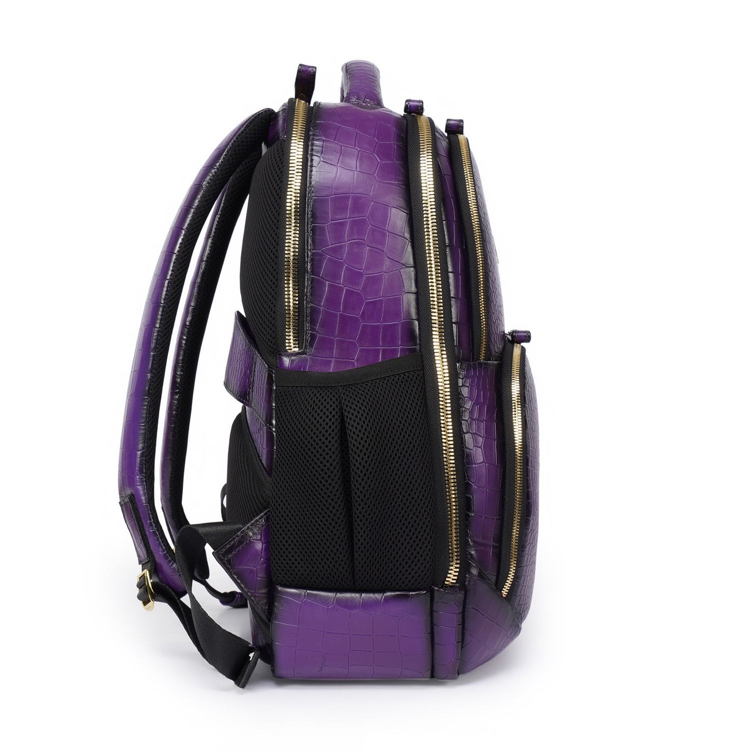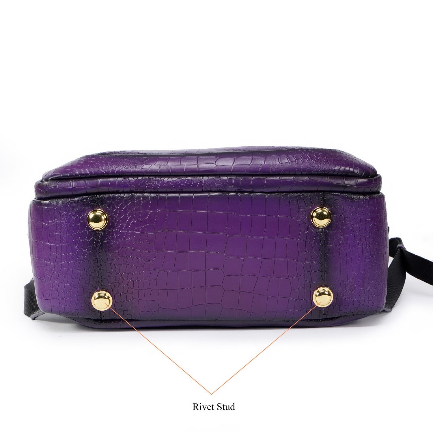 Croco Embossed Purple Leather Backpack With Lion Logo