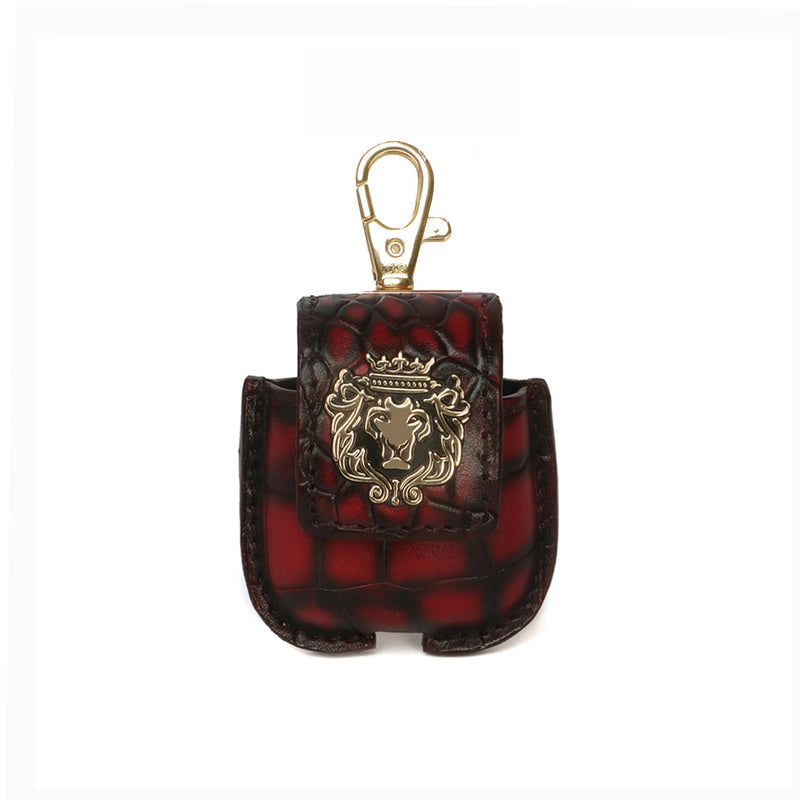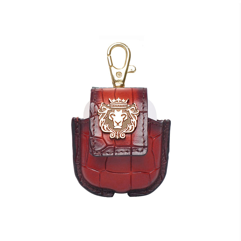 Take your Air-Pod to the next level with this luxurious Croco Textured Air-Pod cover in exquisite wine leather. Crafted by Brune & Bareskin and featuring a distinctive, Its sleek, unisex design is enhanced by the signature Metal Lion Brand logo, as well as a discreet Hanging Dog Hook. This high-quality Brune & Bareskin Brand cover is custom-made for both generation1 and generation 2 air-pod models. Enjoy elegant protection for your air-pods in wine leather.