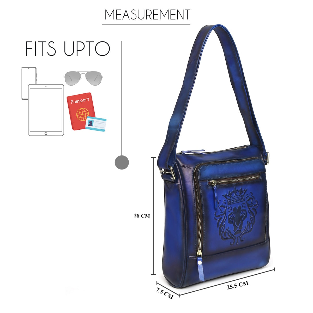 Cross Body Bag In Blue Leather with Embossed Lion