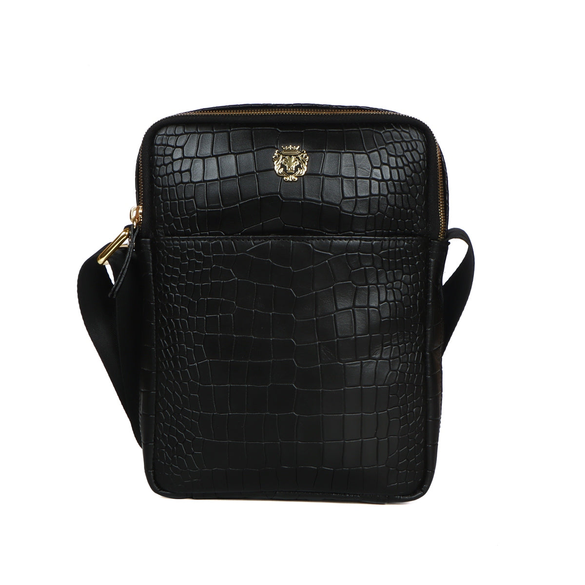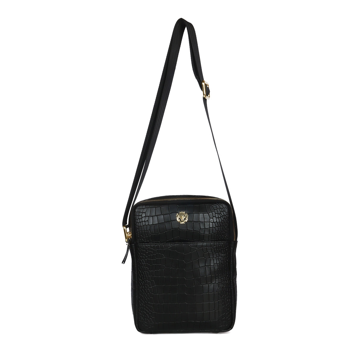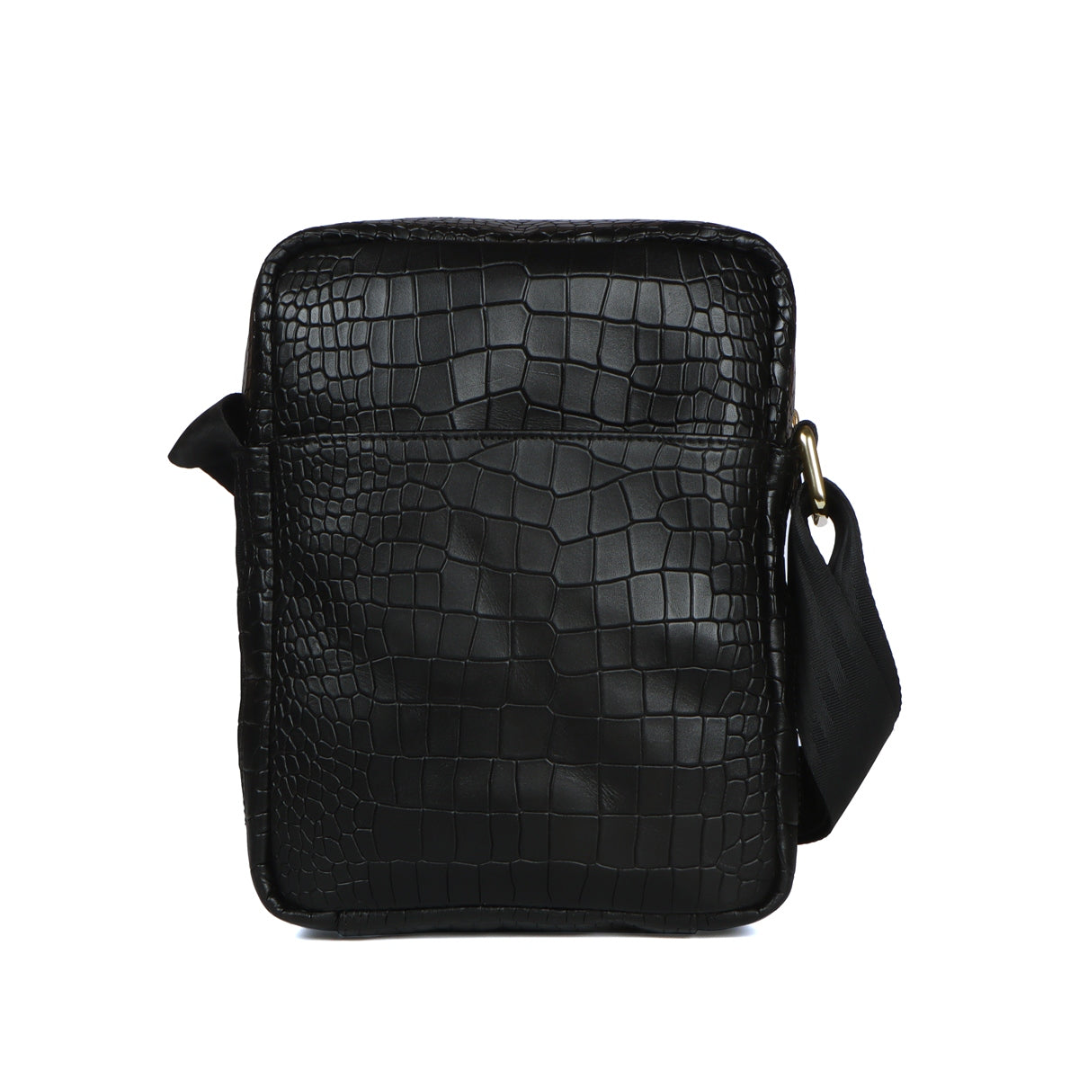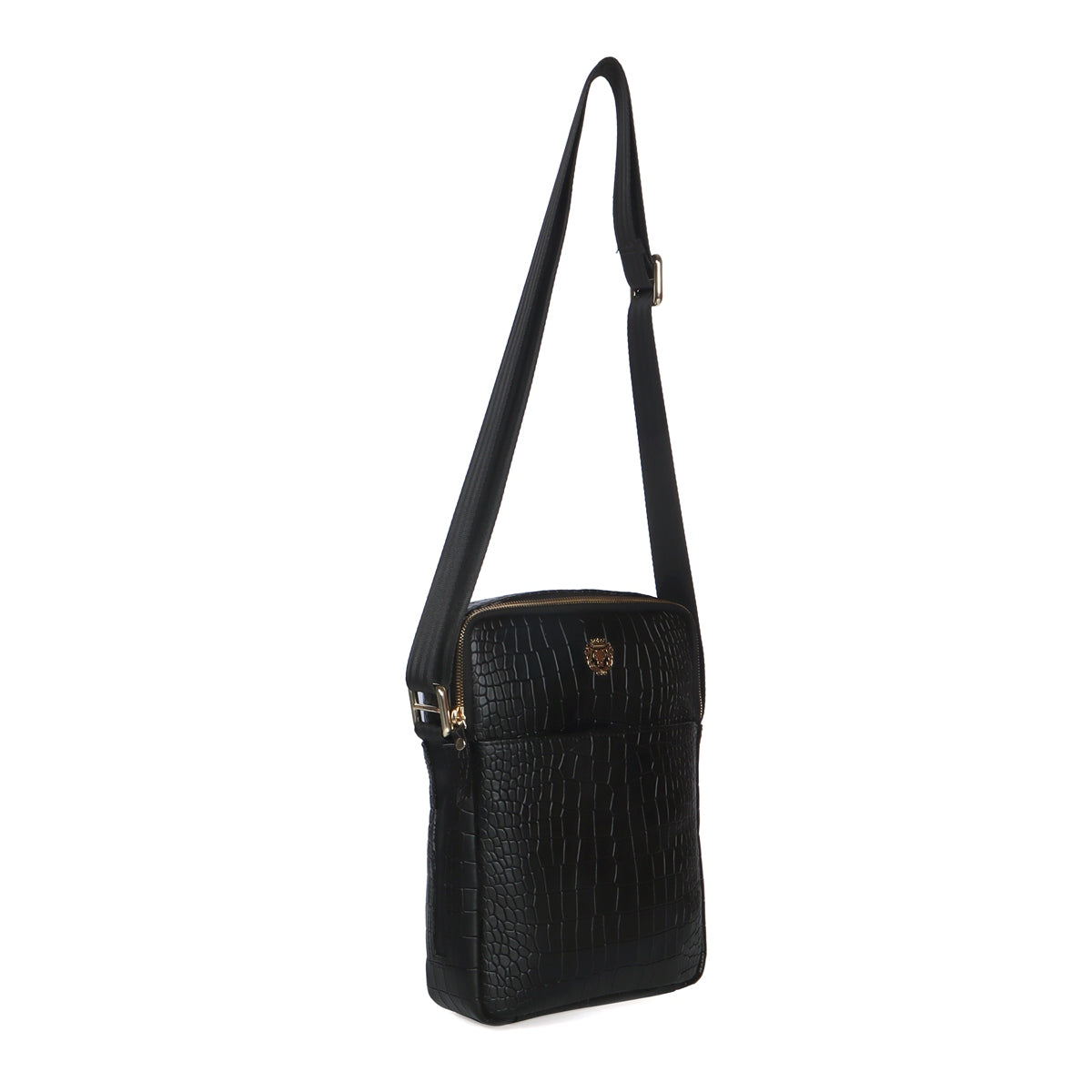 Cross Body Black Deep Cut Croco Texture Leather Bag