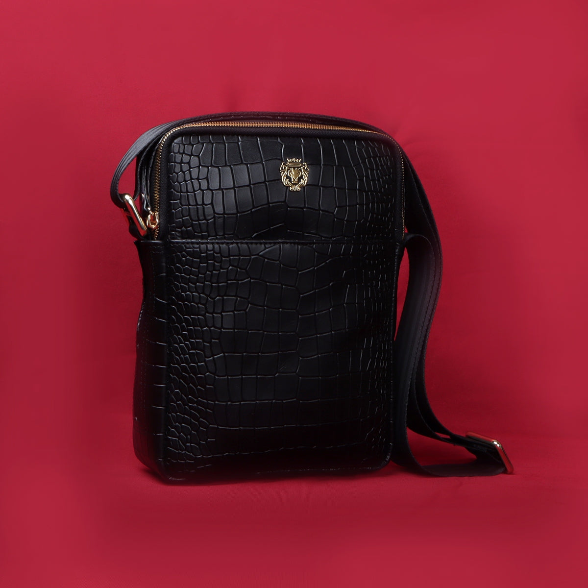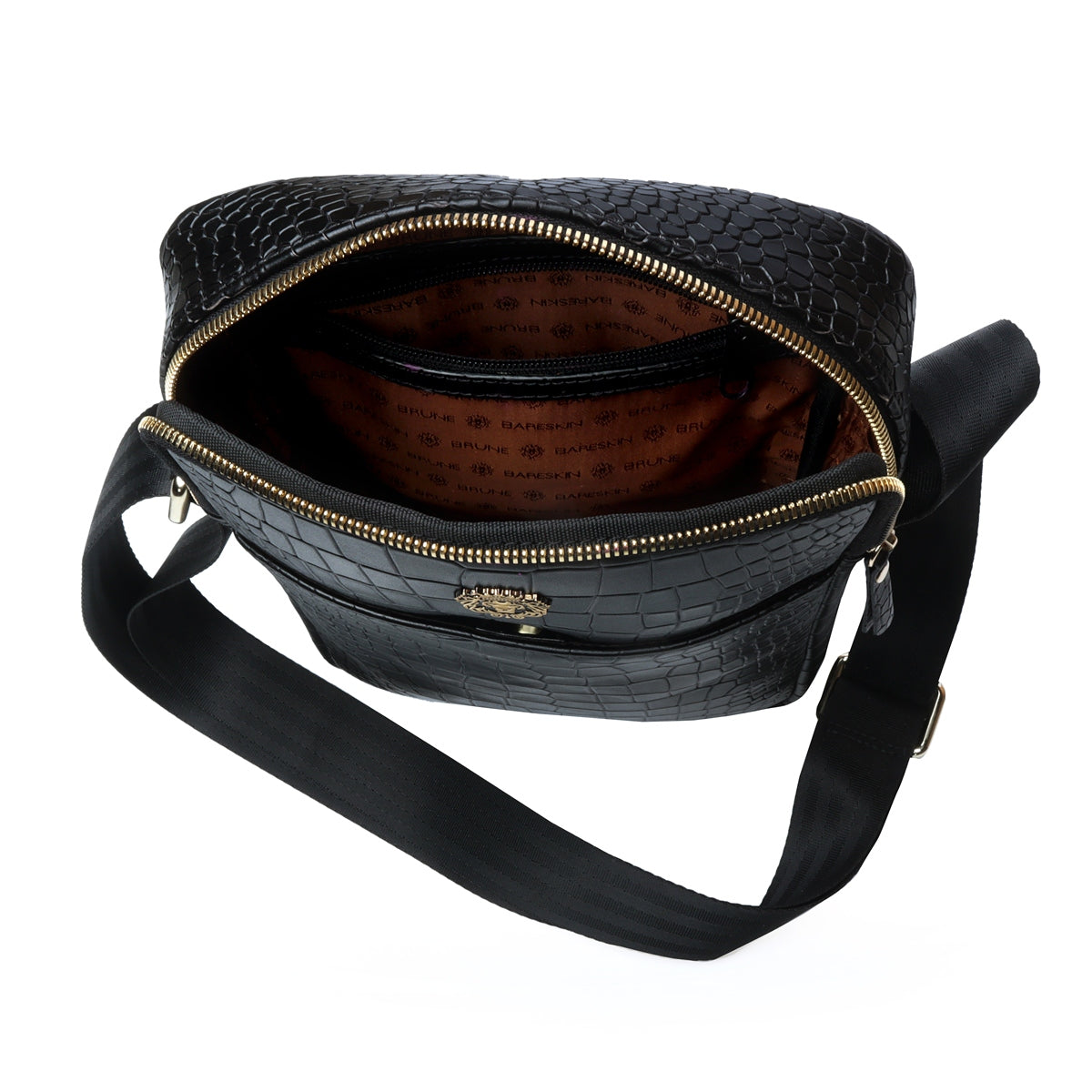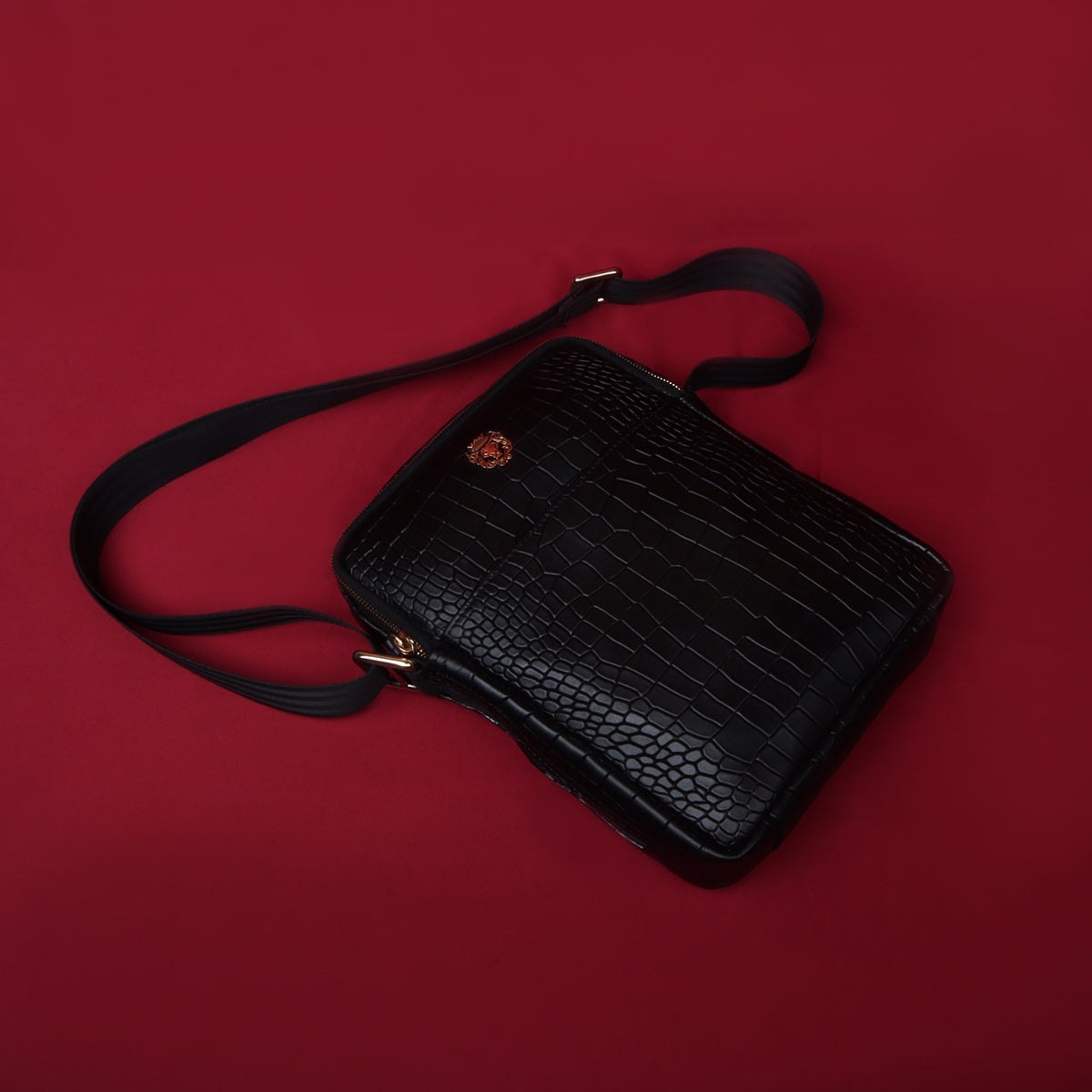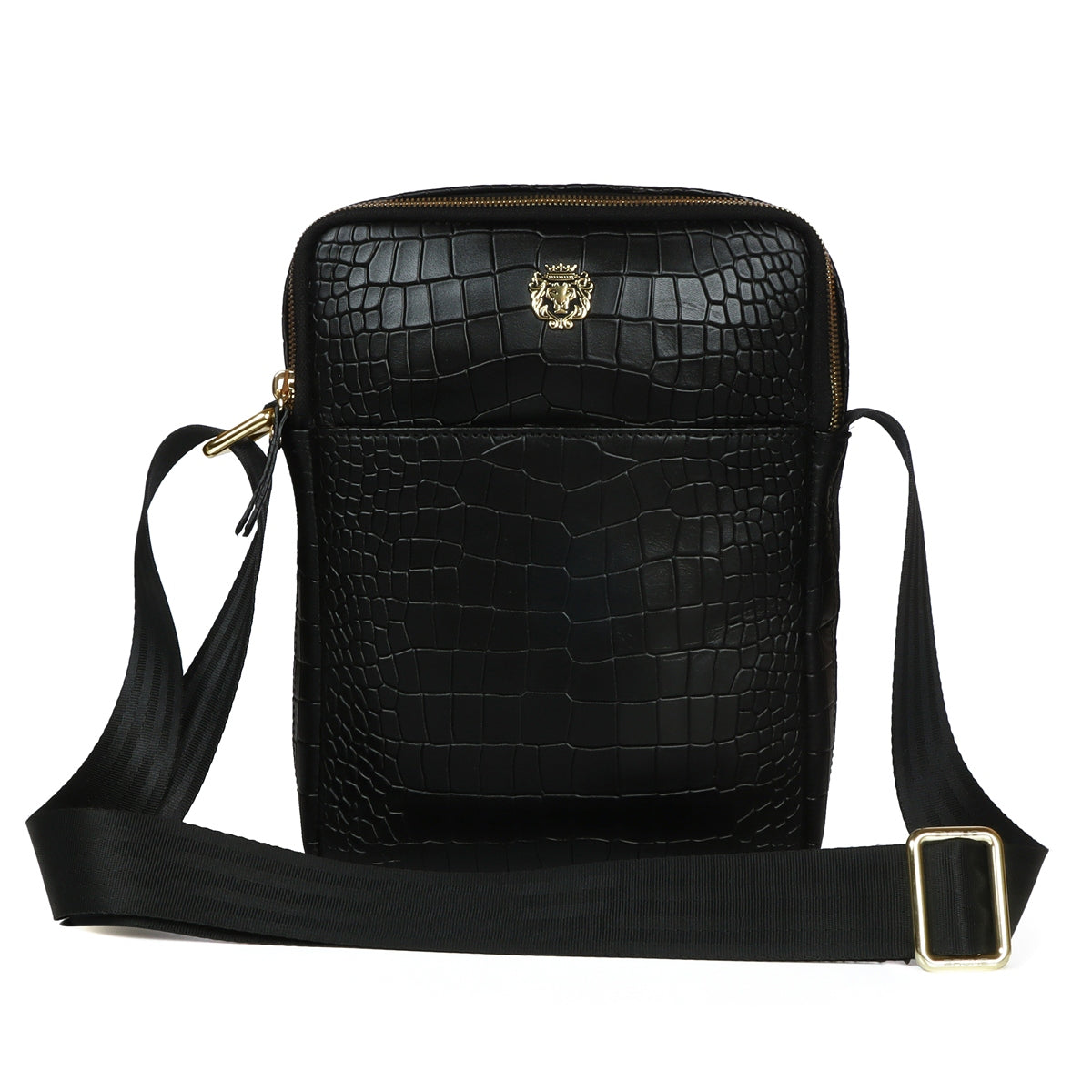 Cross Body Black Deep Cut Croco Texture Leather Bag