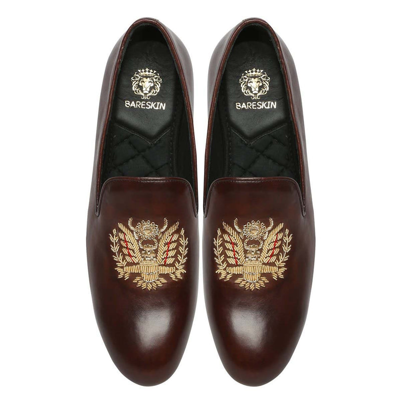 This special crown eagle crest Zardosi extra comfy black genuine Leather slip-on shoe is very elegant. Zardosi Hand Work done by the most skilled sewing team in India makes this slip-on distinct from others. Rubber Sole with Anti Skid Pattern and extra cushioned padding in the insole. You just don't wear to Brune & Bareskin Shoes to Look Good. You wear Them, Because you have never worn a better Looking and Comfortable slip-ons ever. It is a must have footwear accessory to wear with ethnic to casual to semi formal clothes.