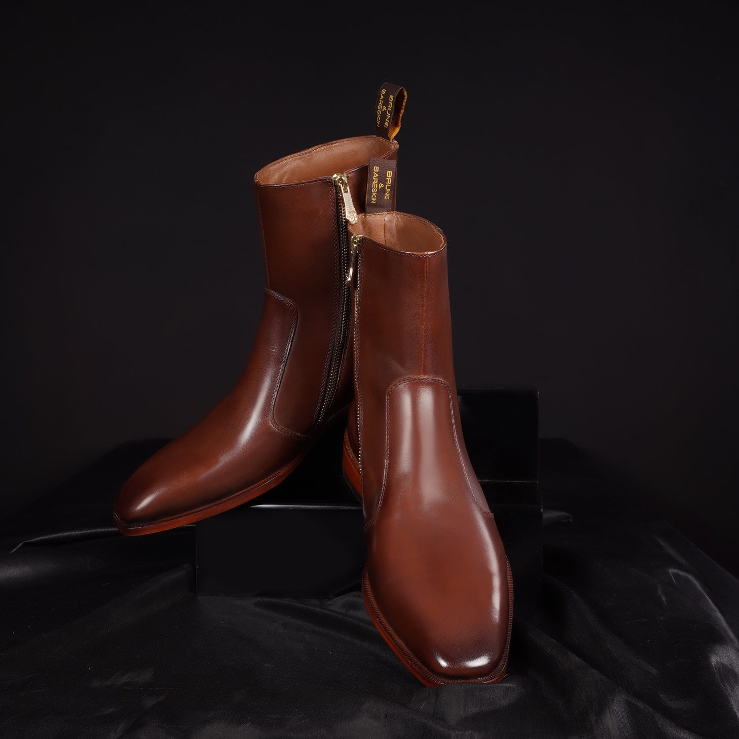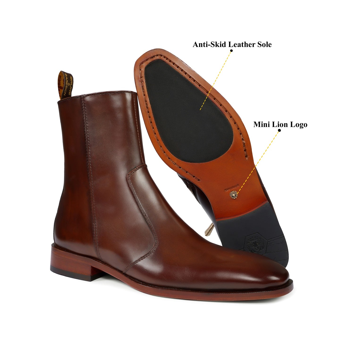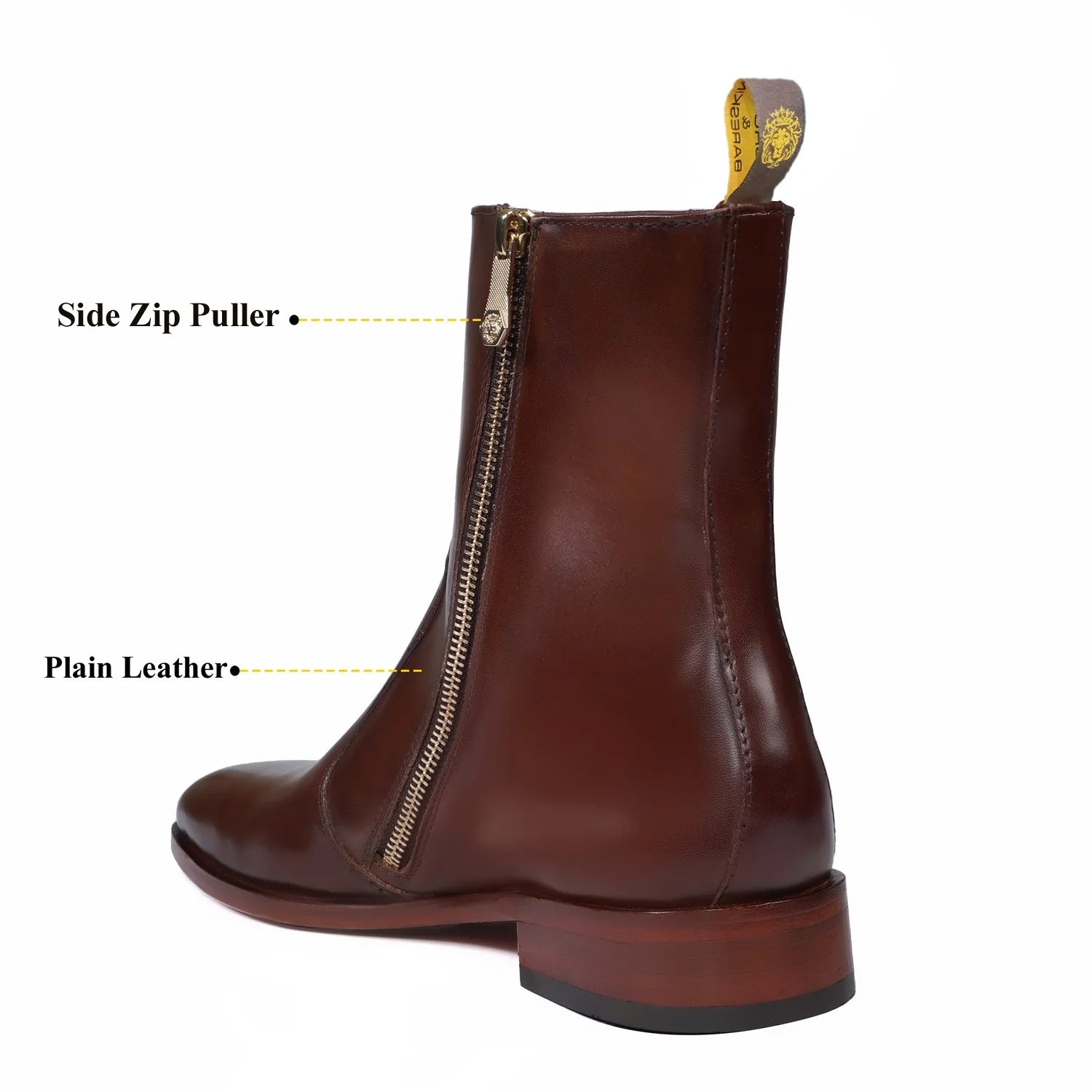 Brown boots in Genuine Leather is always an elite choice for a formal occasion. Finding shoes that spell your style, besides being comfortable to wear is definitely a challenge. However, if the shoes are made by BRUNE & BARESKIN, you can be sure to find the perfect blend of comfort and style. We craft these high ankle Black genuine leather boots to give you an elite look. The stitched detailing on the quarter looks classy. The zip closure provides an extra ease to wear these exquisite boots. The leather sole and Cuban heel adds the extra elegance to it.