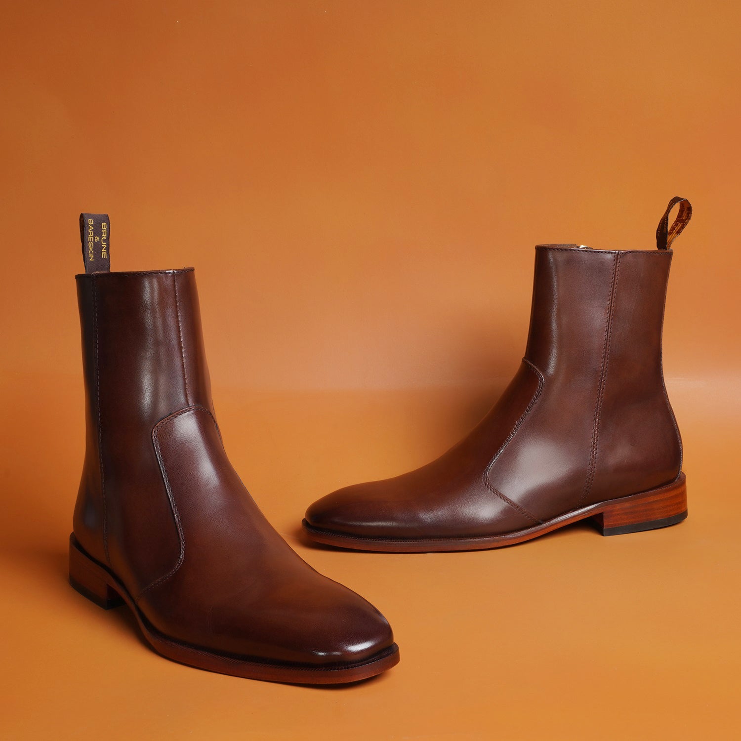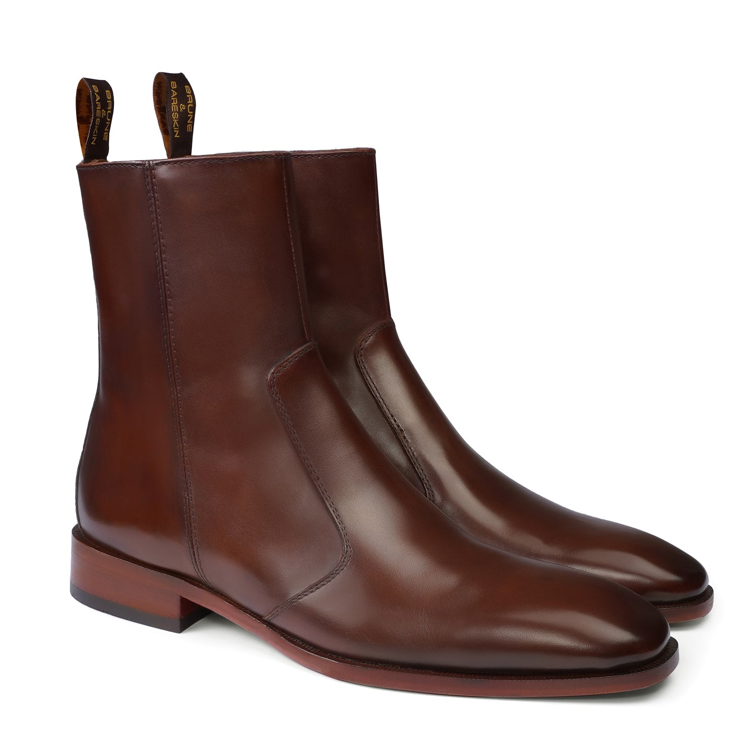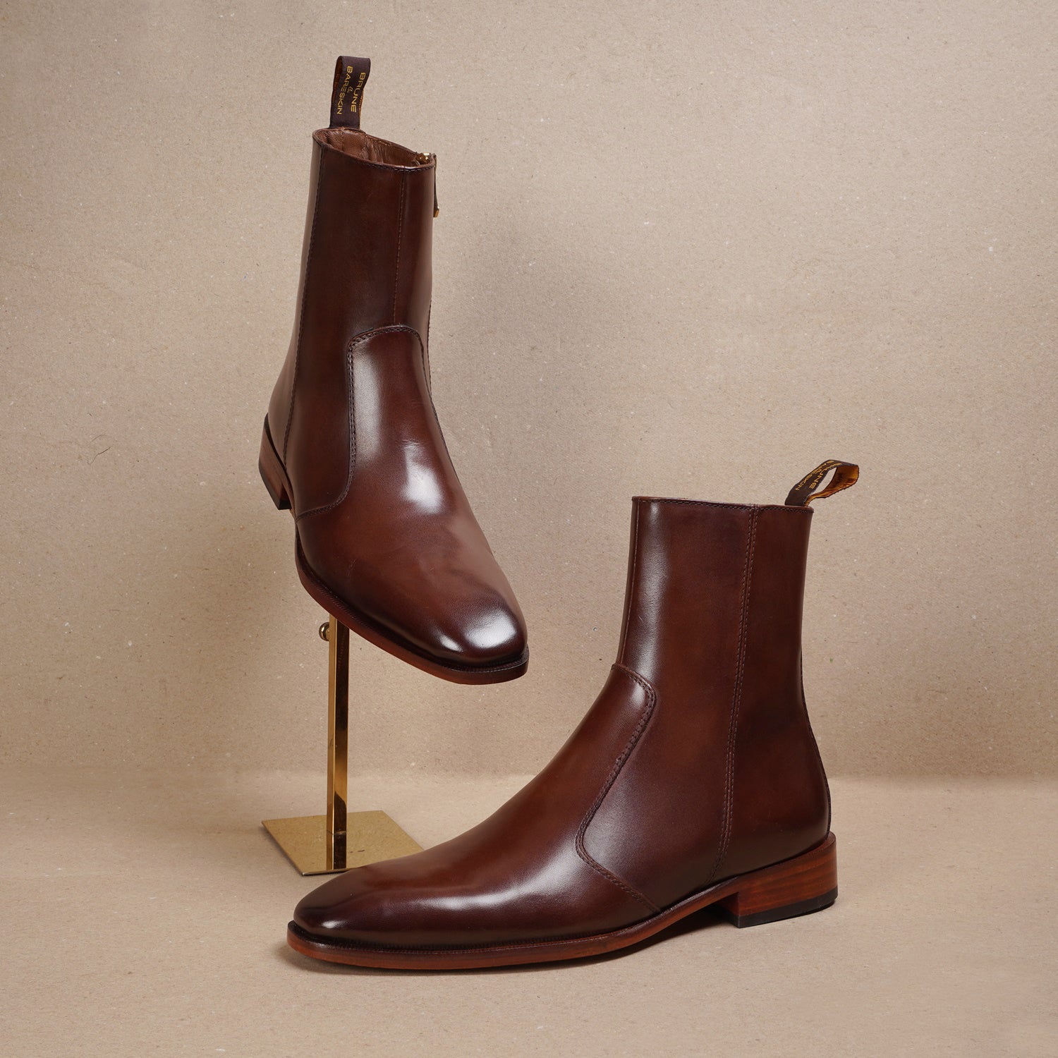 Chelsea Boots Stitched Brown Leather with Zip Closure