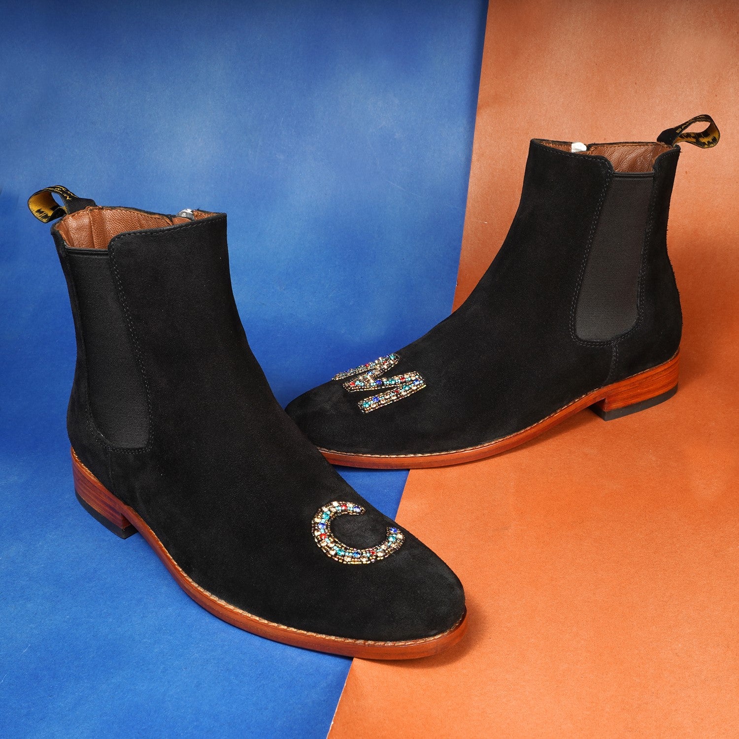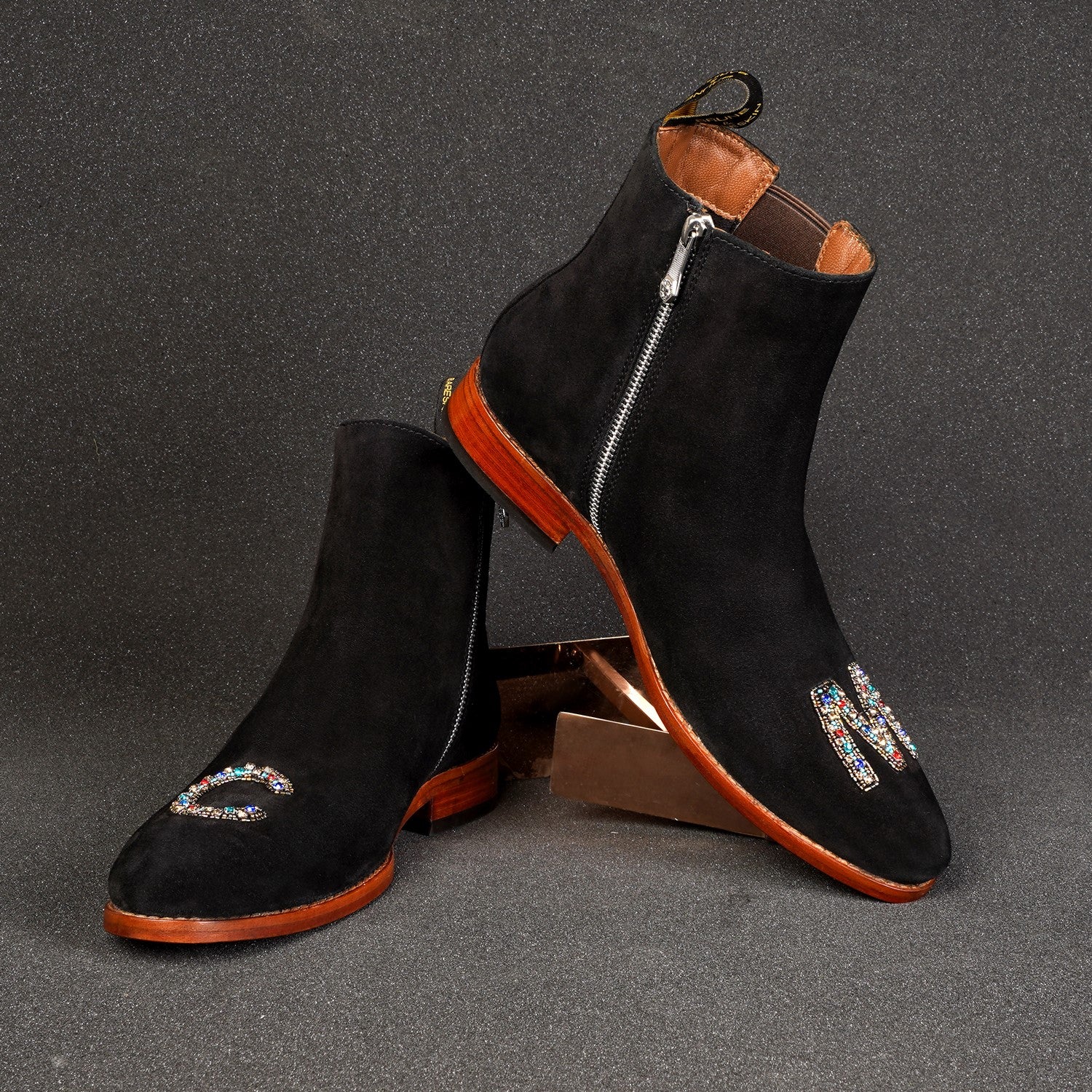 Custom Made Embroidered Black Suede Leather Boots