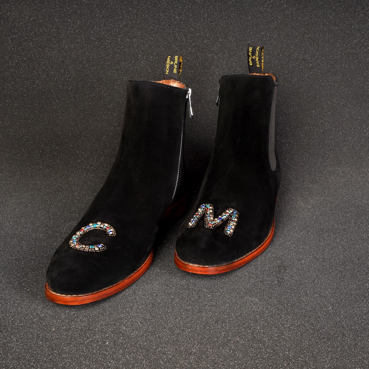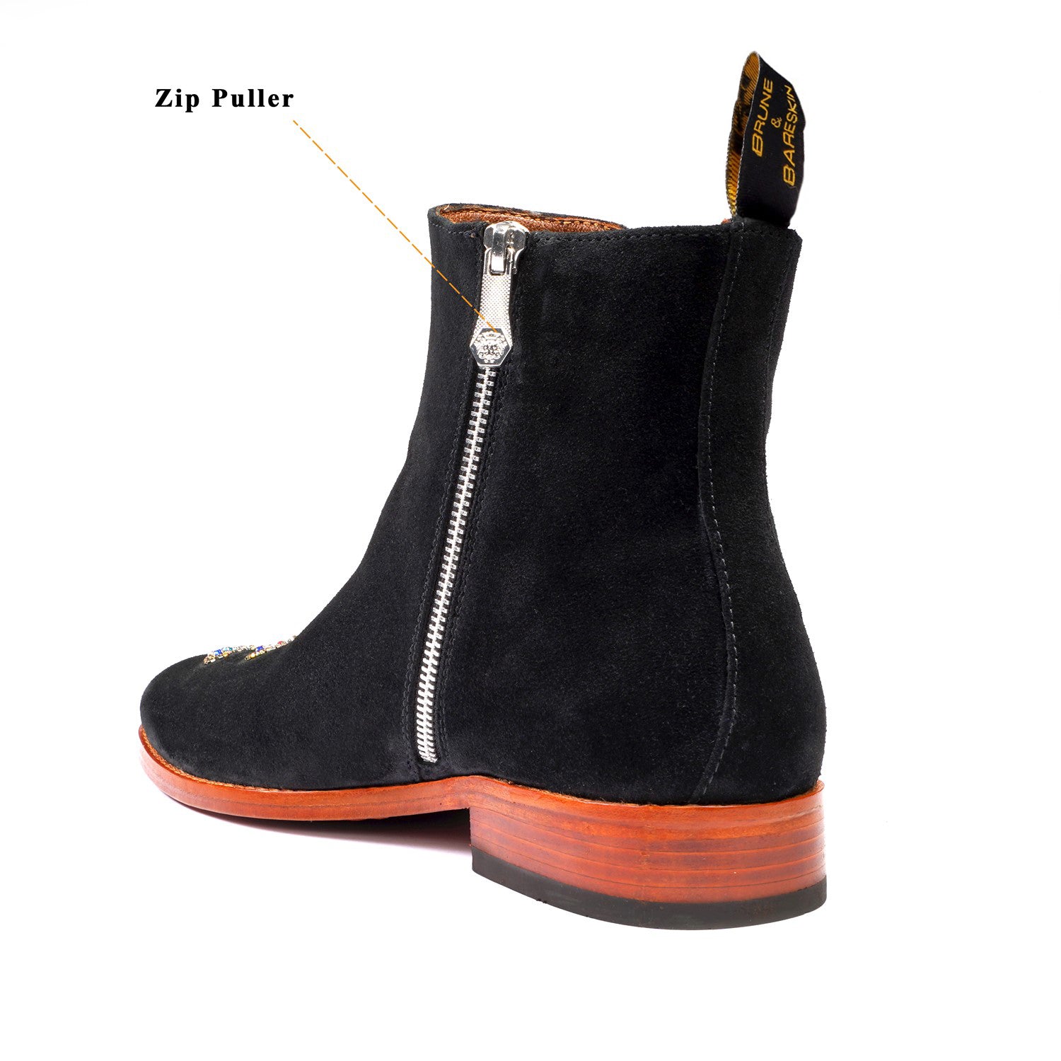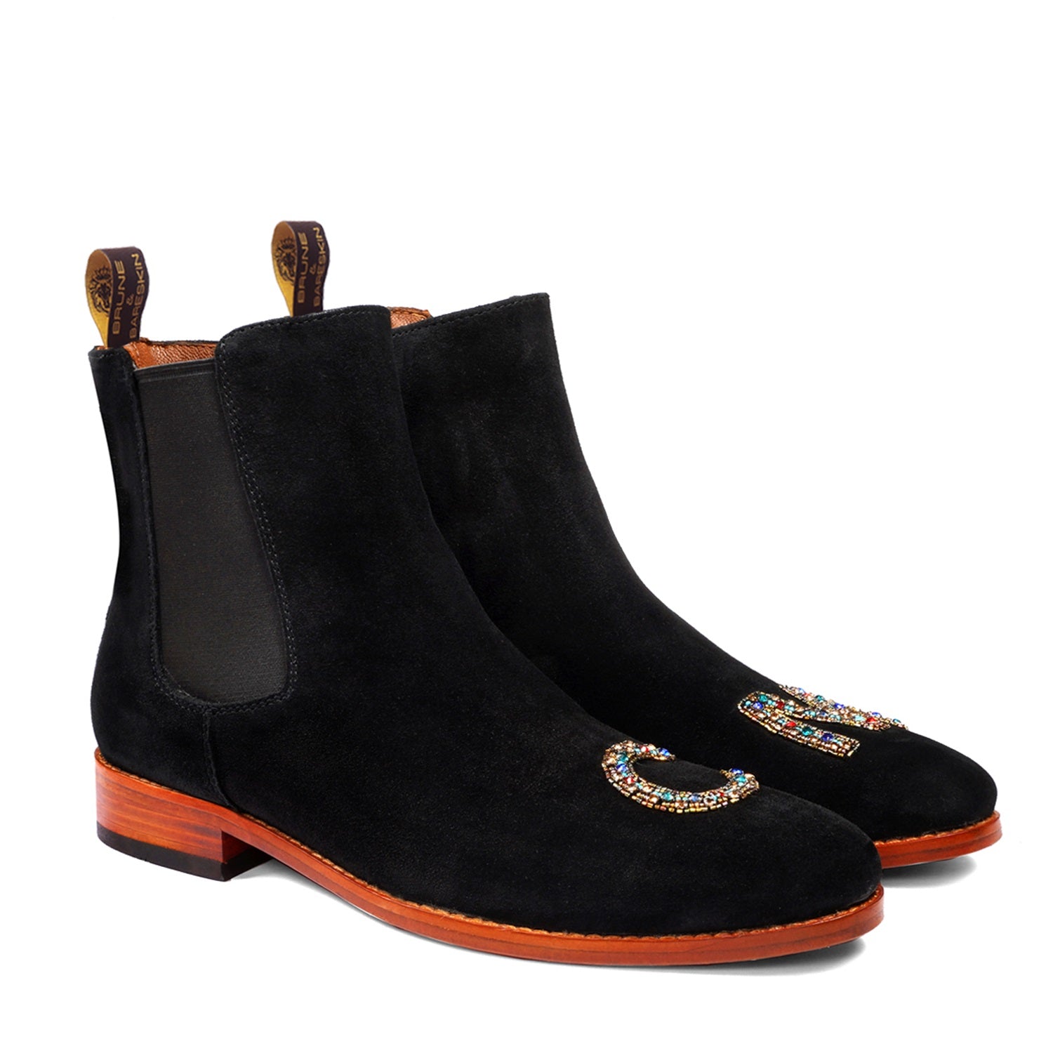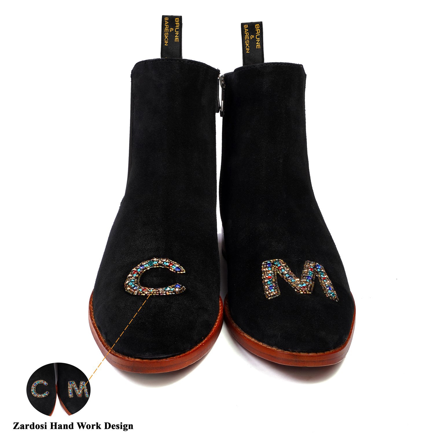 Introducing Brune & Bareskin exquisite black velvet hand-embroidered men's suede Leather boots—a perfect blend of luxury and comfort.