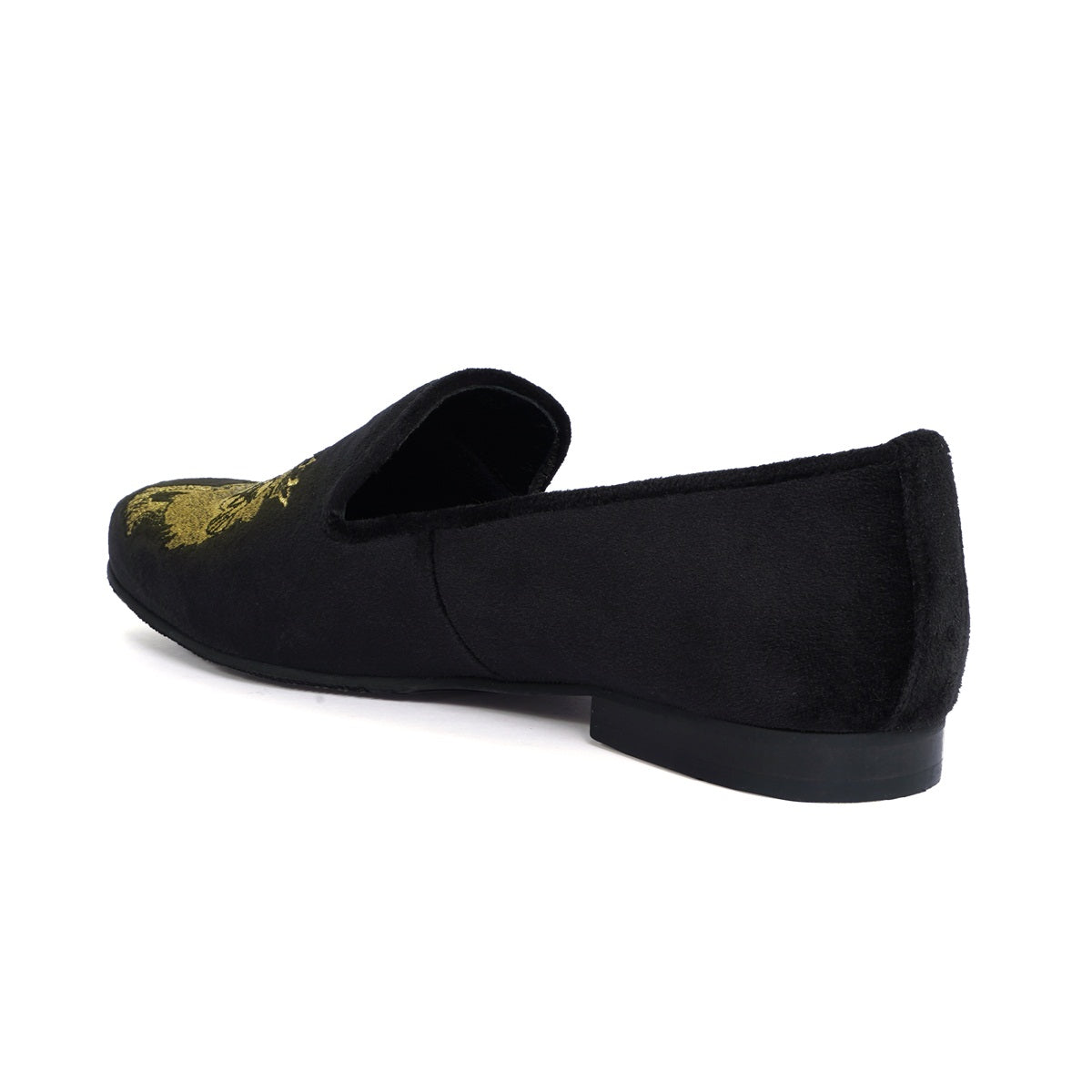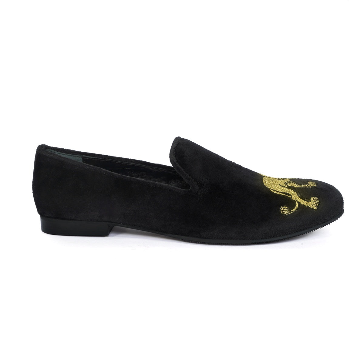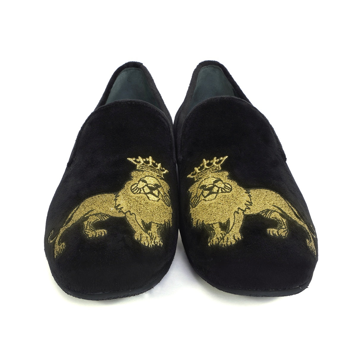 Custom Made Embroidered Lion Black velvet Slip-On Shoes for Men