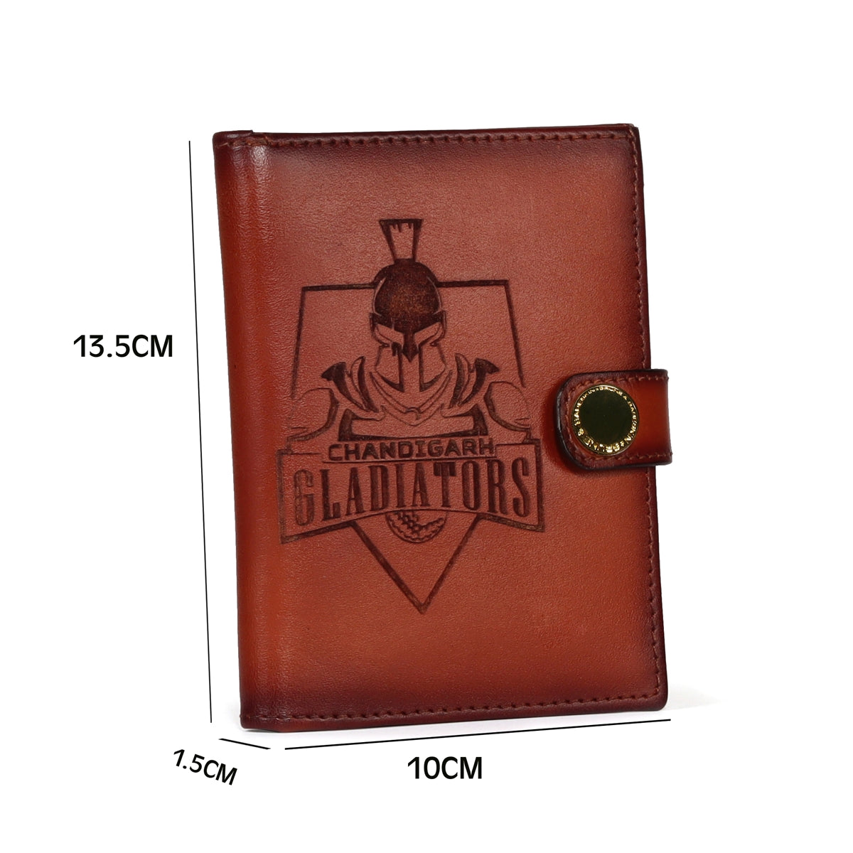 Traveling accessories have always been so important for us, it needs to be classy as well as durable too. It holds the passport effortlessly in a dedicated secure pocket. It features multiple staircase pockets on one side which open up vertically. It has a dedicated foldable pocket to carry the boarding pass easily. The snap button closure provides an extra layer of security. We believe in this and introducing a great opportunity for our customers to write their names and initials and Customized Logo on the products. Customized "LOGO" is done on Tan Leather Passport Holder with Laser Technique as per the request of Chandigarh Gladiators Golf Team Players. Laser engraving Work done by the most skilled team in India makes this Passport Holder distinct from others. The genuine leather made with the Patina regime makes it a perfect accessory to use for countless years. You can get it personalized with your name initials with our Bespoke Services. Just click on CUSTOMIZE NOW Button (Just above the "ADD TO CART" button) & fill out the form to submit your customization requirements. Or you can reach us by Call, Email, What's App, and DM.