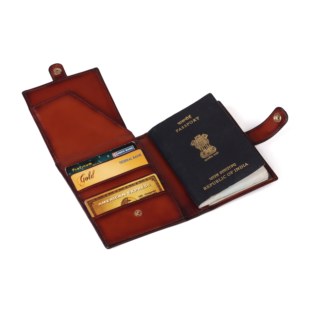 Customised Logo Tan Darker Scritto laser Leather Passport Holder With Foldable Boarding Pass Pocket By Brune & Bareskin