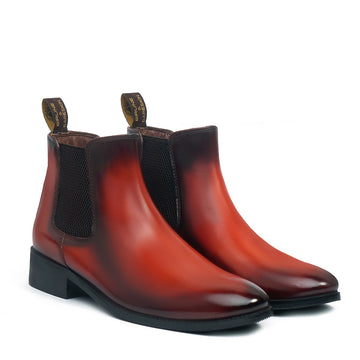 This high-ankle length Cognac leather boots can be customized to your liking. Tips of these pointed leather shoes enhance the style statement. We create what you expect, customizing for our customers gives us endless happiness to fulfill their wishes. Customizations and Initials on footwear become a trend, but it matters how perfect it would be done. Customized for a customer on a request to "ADD EXTRA HIGH HEEL" of the shoe. The The greater detailing at the ankles with classic elastic outside and inner side made it very convenient to wear. These boots provide the distinct and sassy look. They are easy to team with formal trousers as they blend well with the classic fabrics as well as the modern blended synthetic fabric pants, slacks and trousers. The leather sole adds the extra elegance to it. You can customize this chic boots in any of your favorite color with our bespoke services. Wear it and make a remember able mark of fashion.