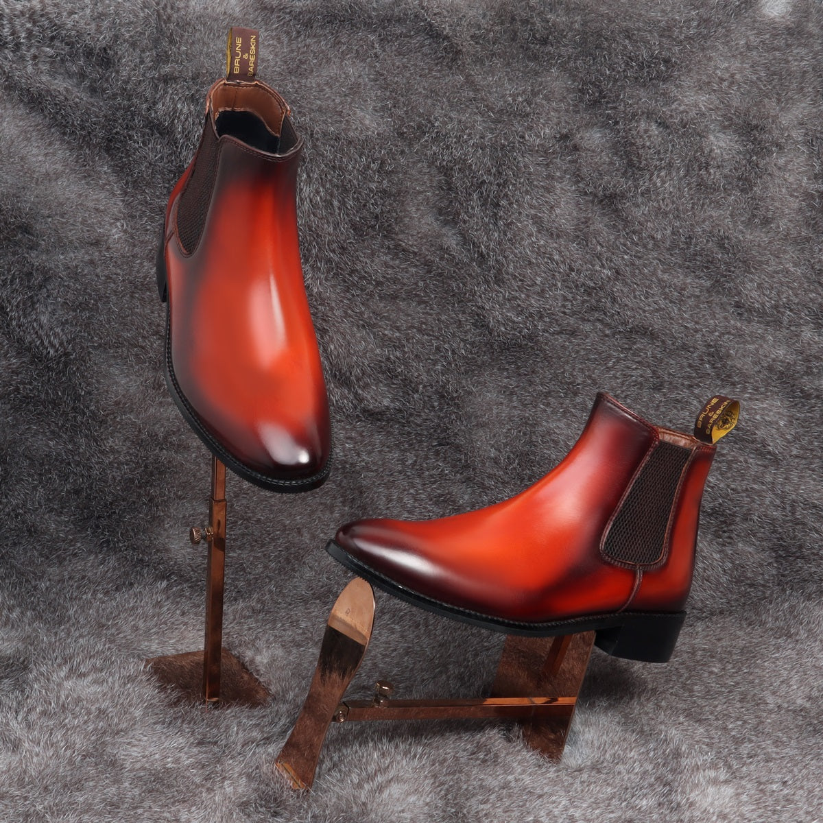 Customized "EXTRA HIGH HEEL" Cognac Leather Hand Made Chelsea Boot By Brune & Bareskin