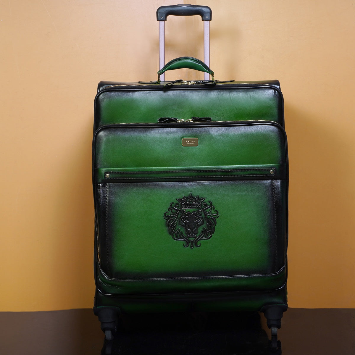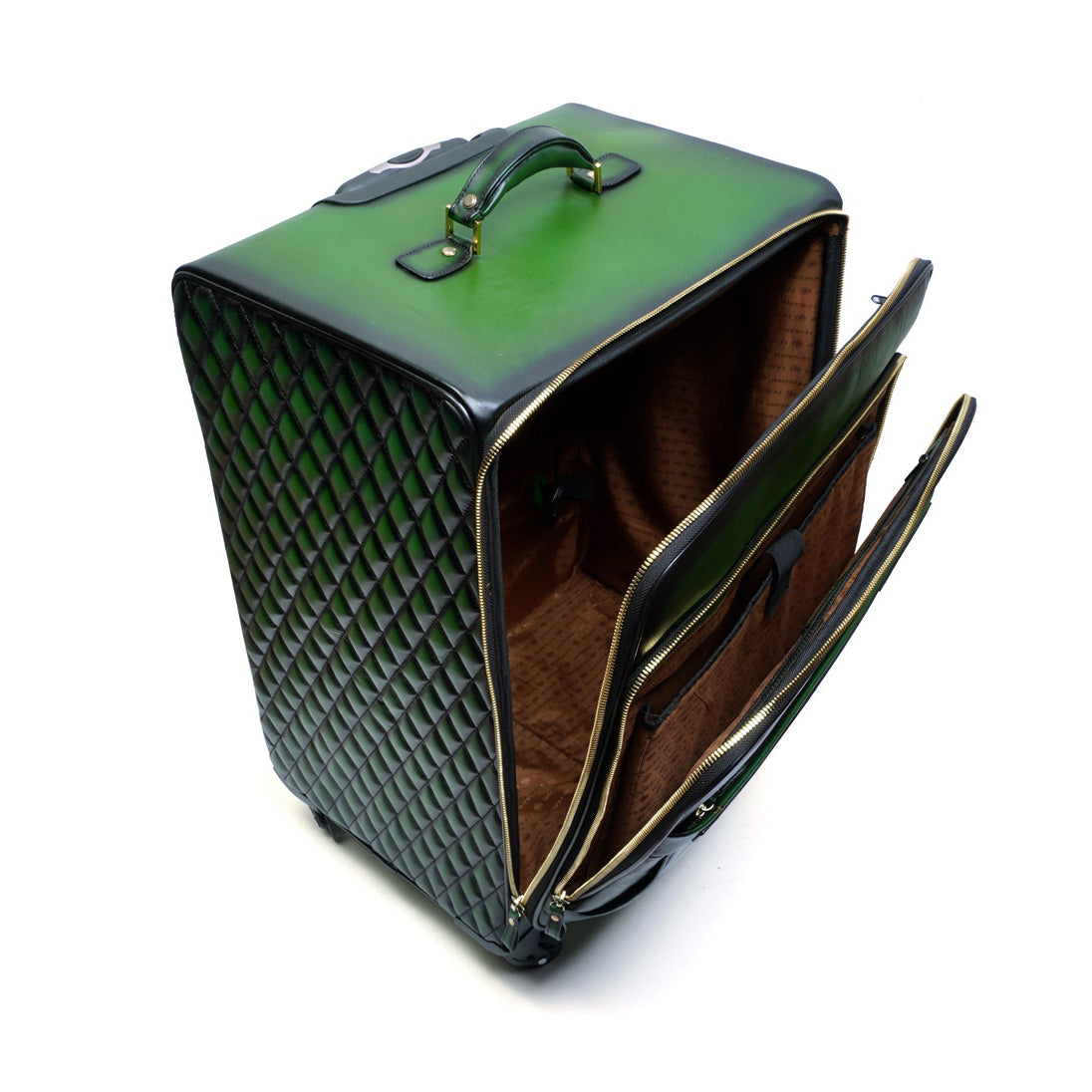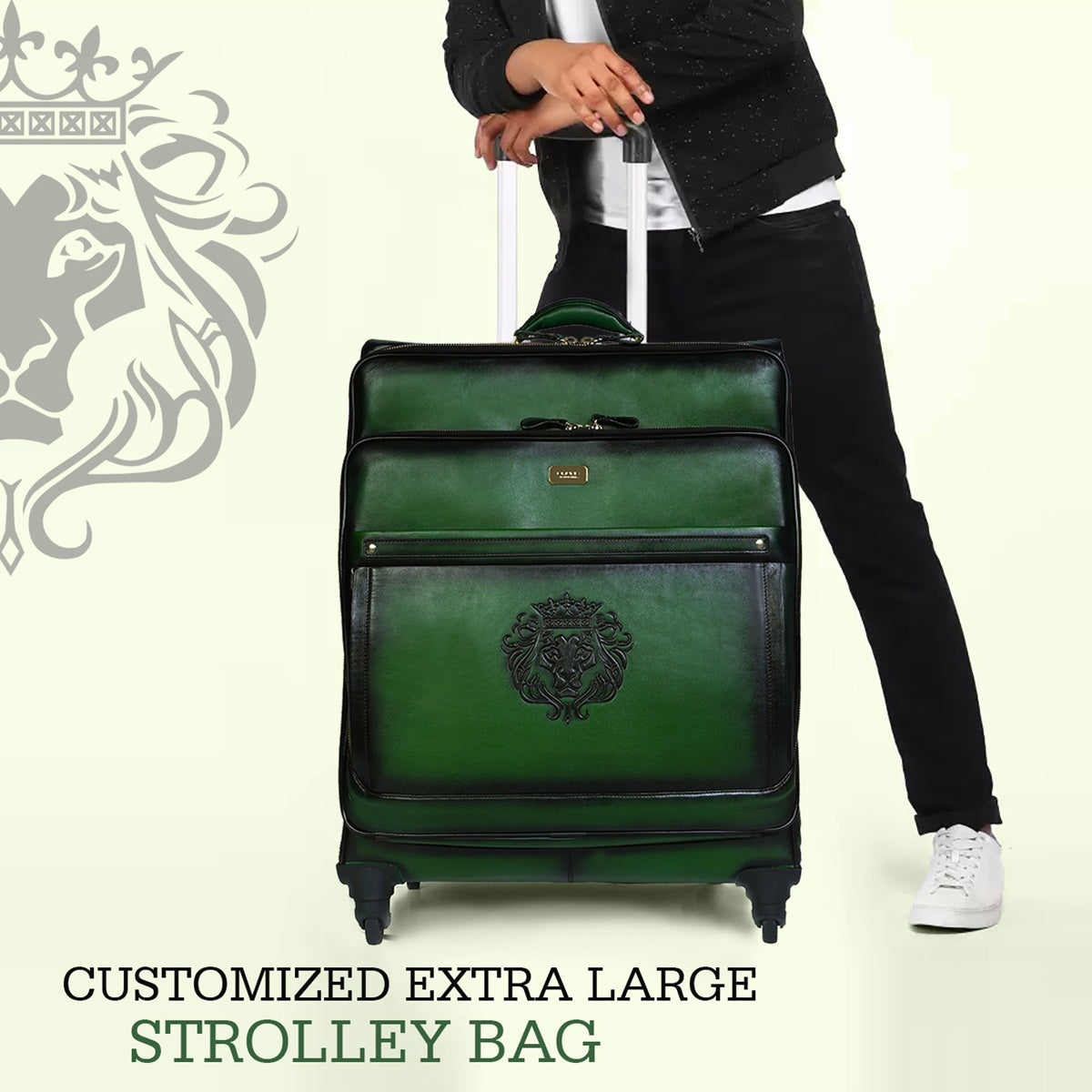 Customized Extra Large Strolley Bag in Green Genuine Leather