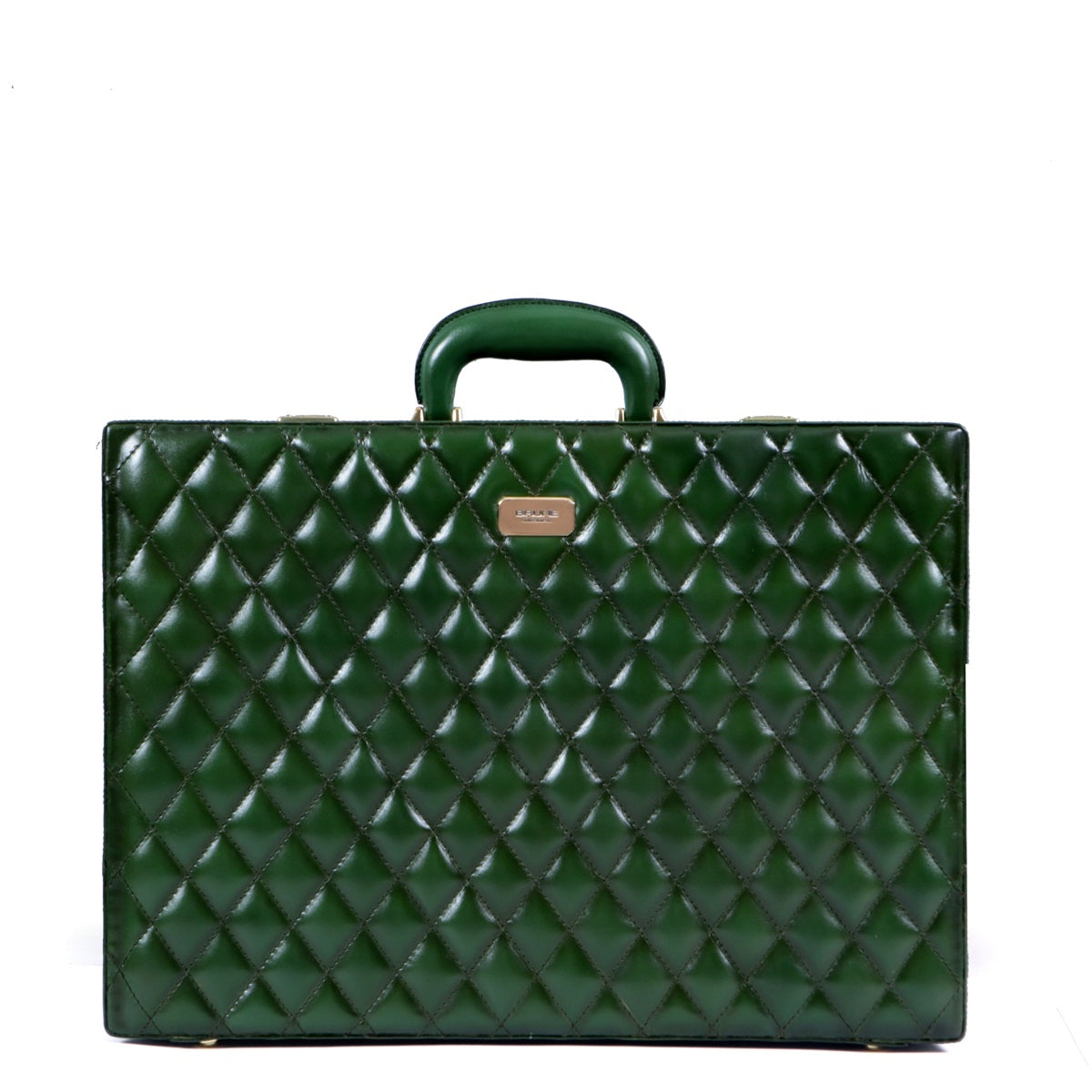 Customized Office Briefcase in Green Diamond Stitched Pattern