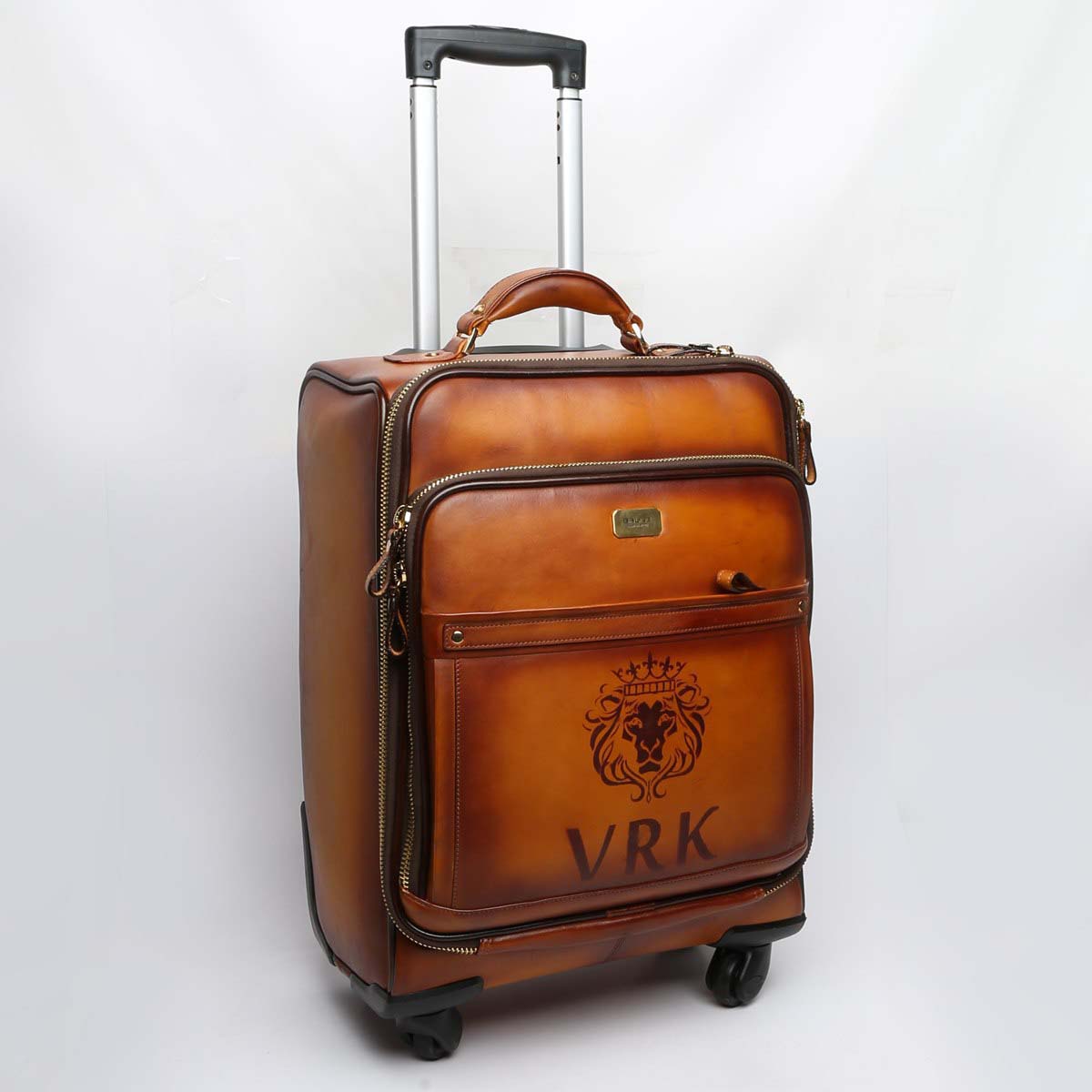 Handcrafted Tan Leather Trolly Bag with VRK Initials by Brune & Bareskin