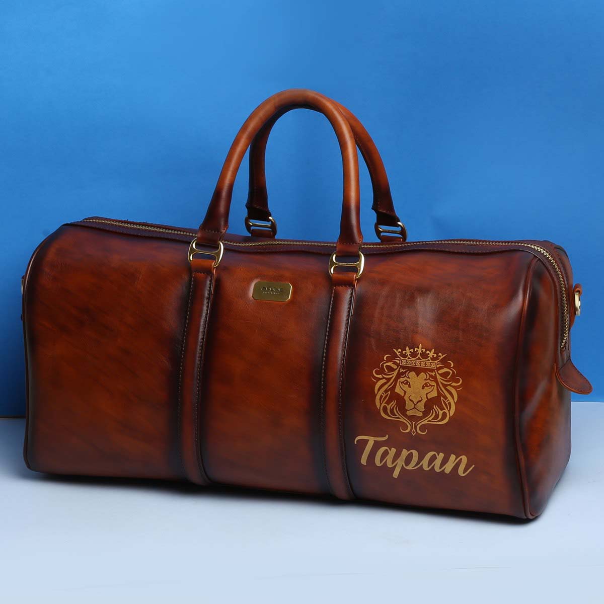 Customized "TAPAN" Initial Tan Leather Duffle Bag by Brune & Bareskin