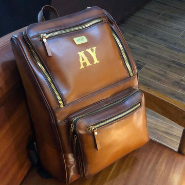 Handmade Tan Leather Backpack with Your Name Initials by Brune & Bareskin