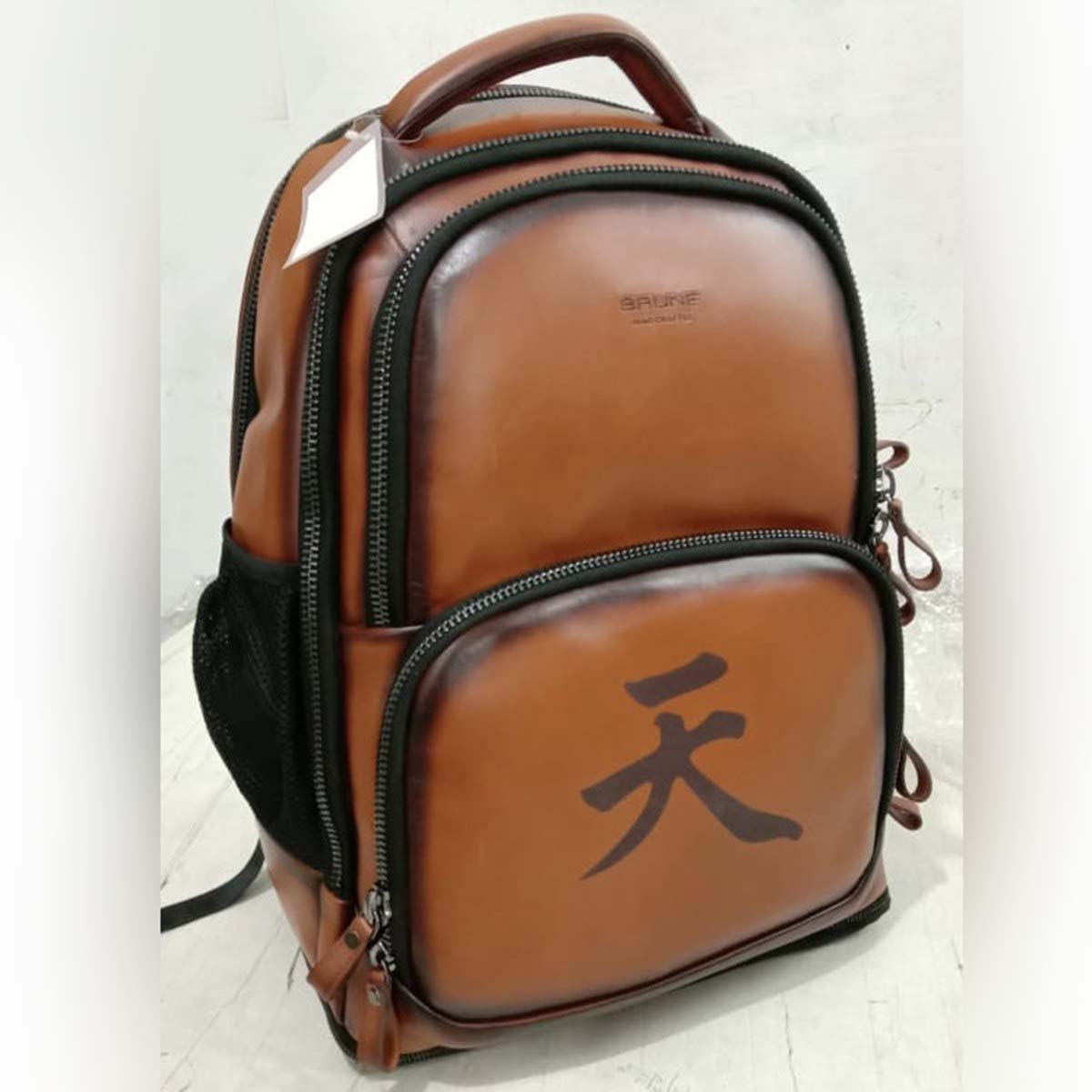 Customized Tan Leather Backpack with Your Language Name Initials by Brune & Bareskin