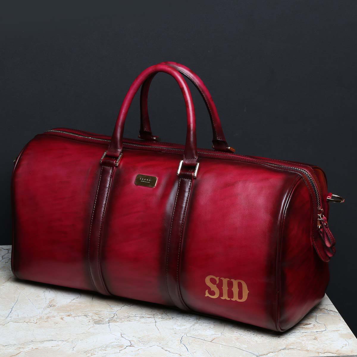 Custom-made Cherry Leather Duffle Bag with Name Initials SID by Brune & Bareskin
