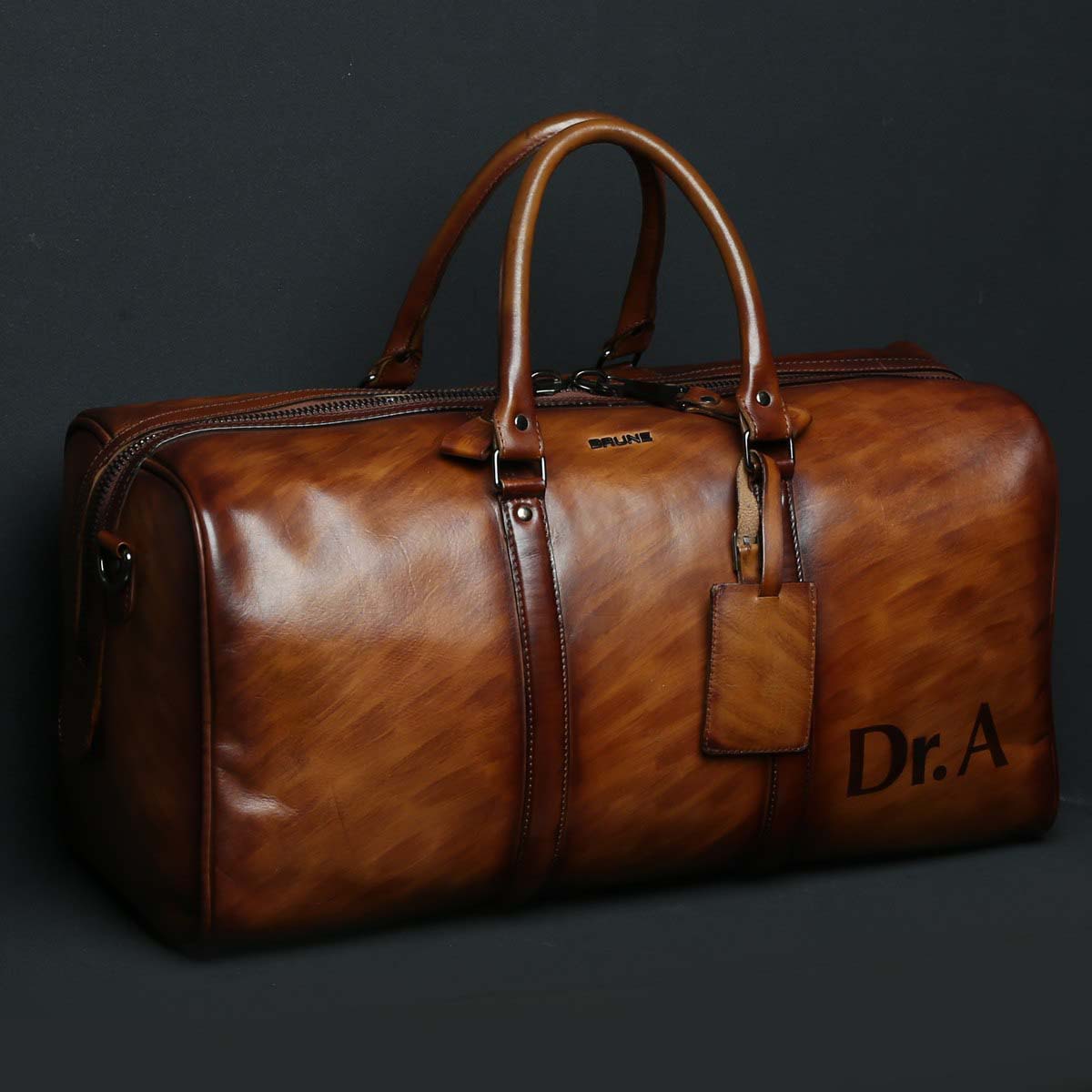 Customized Tan Leather Duffle Bag with Hand painted Your Name Initials by Brune & Bareskin