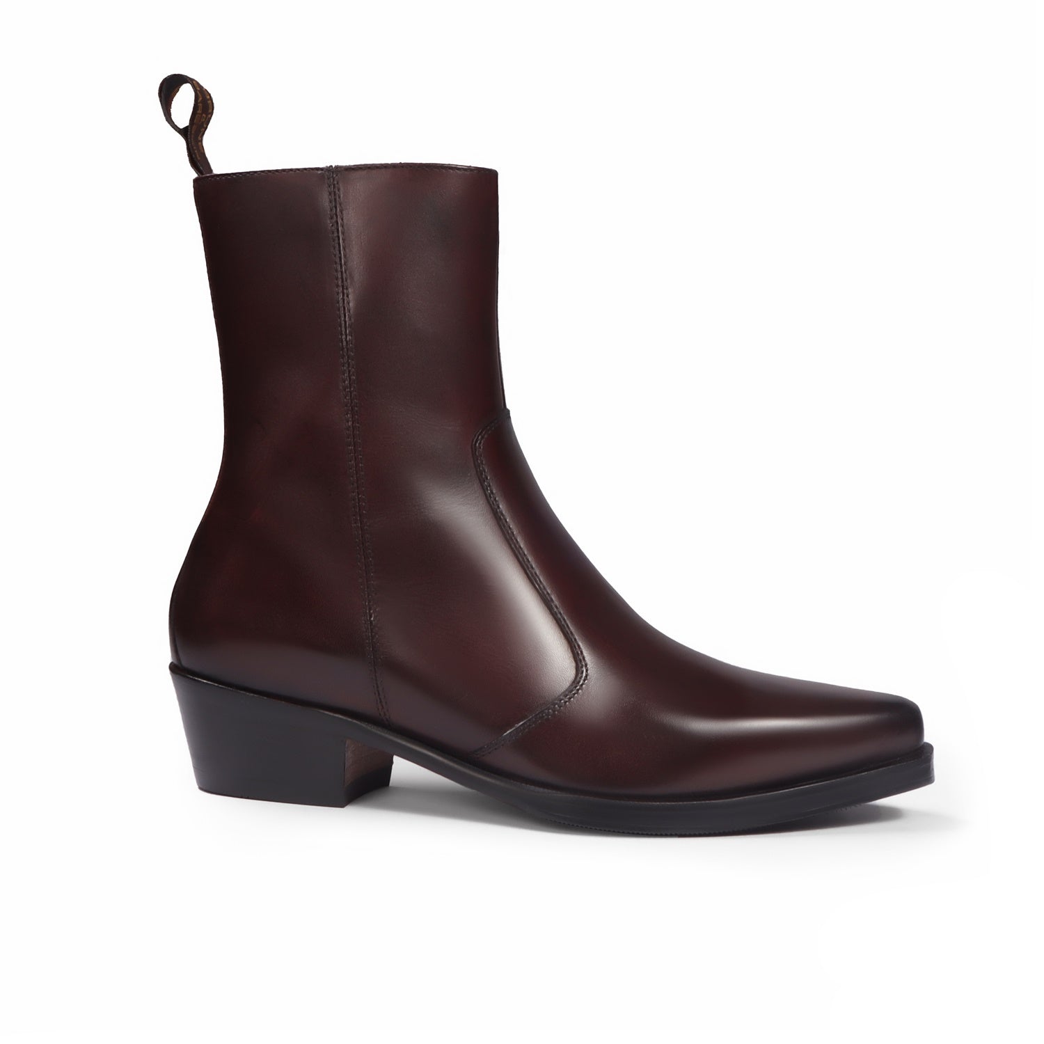 Ankle boot in leather are a dream come true for many a fashion-aware executives. We craft these high ankle dark brown full grain leather cowboy boots to give you an elite look. This shoe can be customized according to your liking. This Shoe is entirely handcrafted by our expertise.