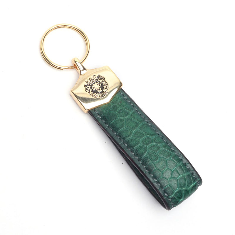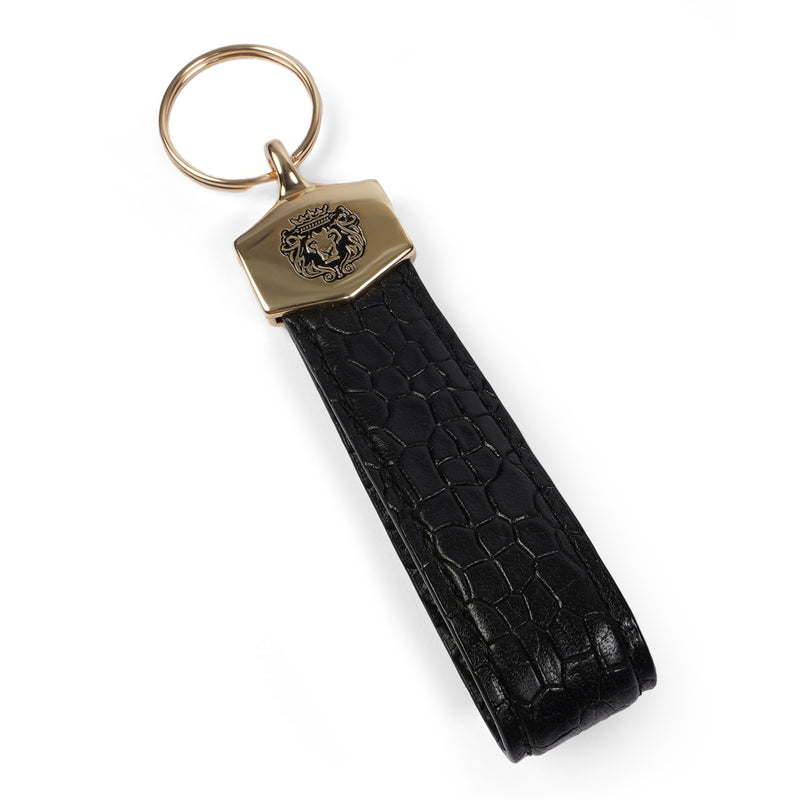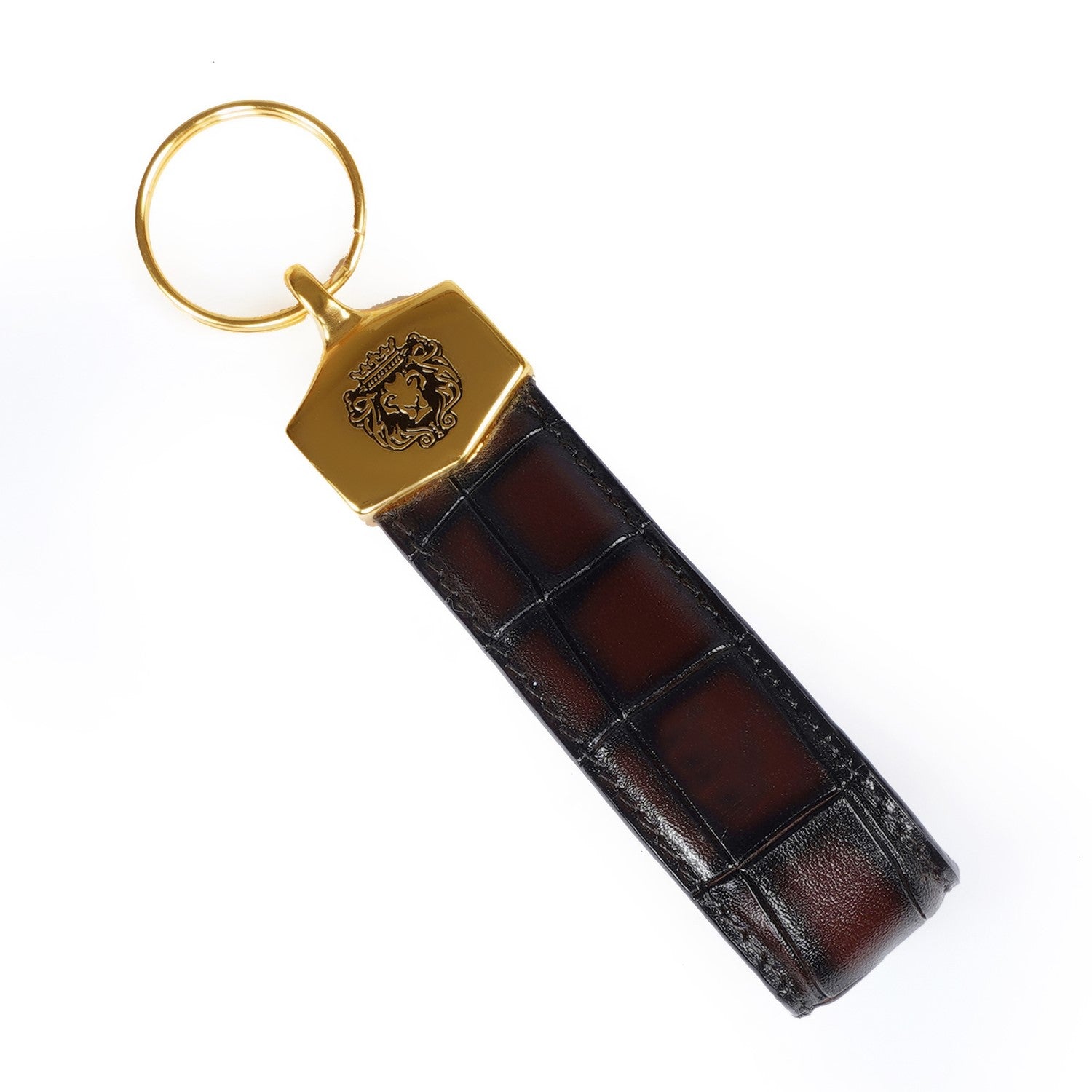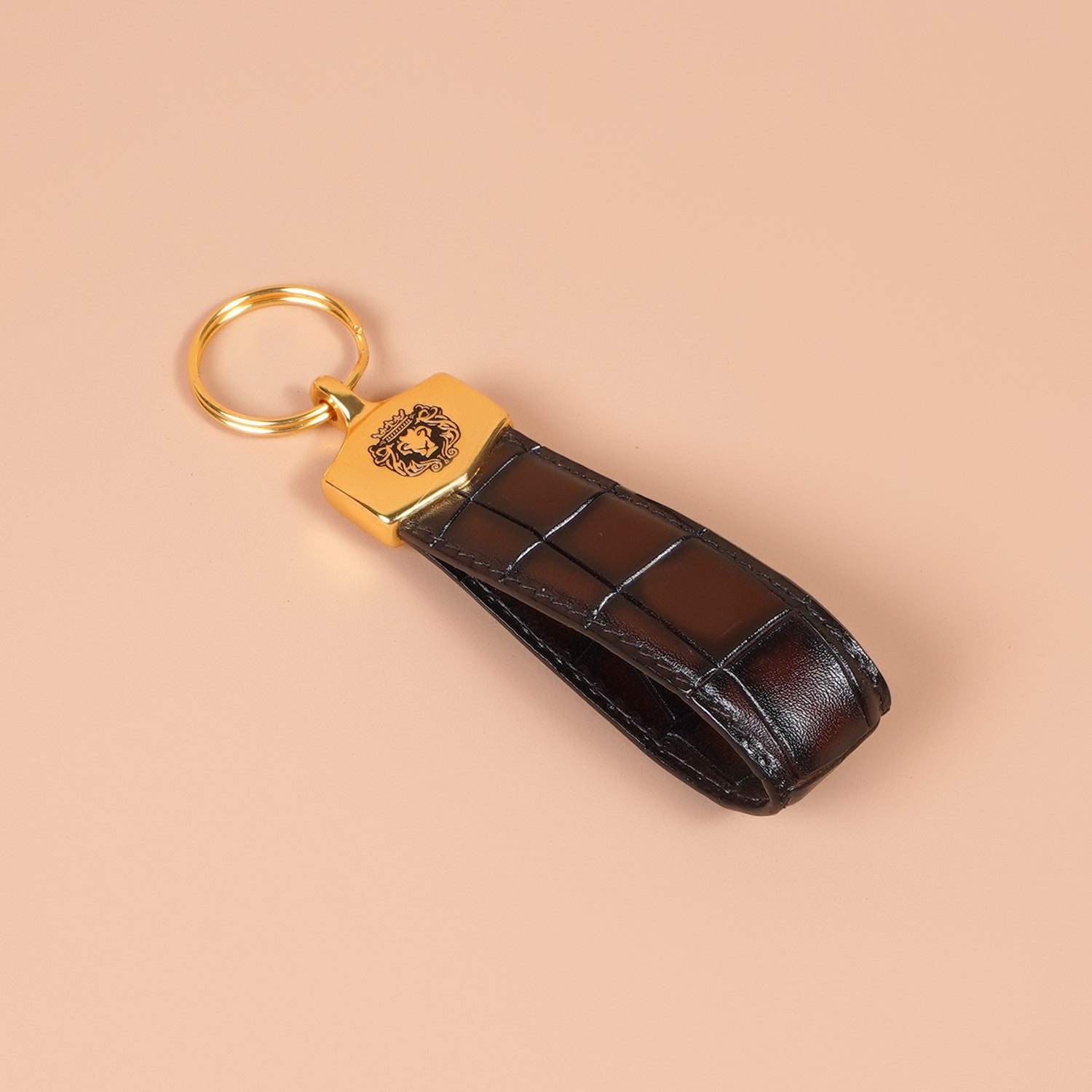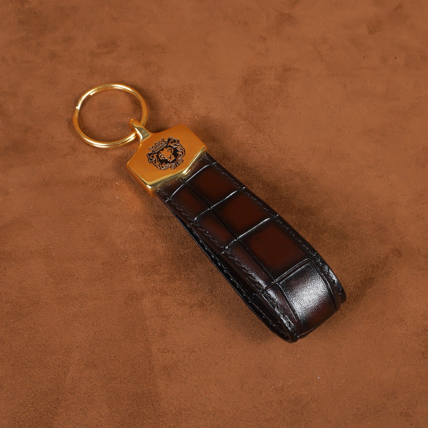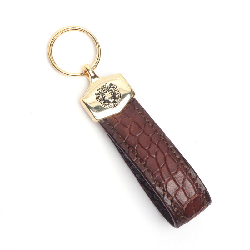 Dark Brown Croco Embossed Leather Keychain