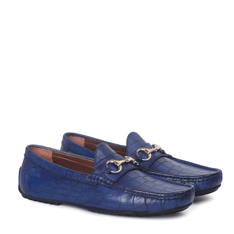 A modern twist on the classic moccasin slip-ons shoe is style thing to admire. The deep cut croco textured leather looks very elegant. The golden horse-bit on the croco textured dark brown leather enhances the chic style further. The hand painted burnished effect on the genuine leather surface showcases the masterpiece level art. The light weight sole provides the all day comfort.