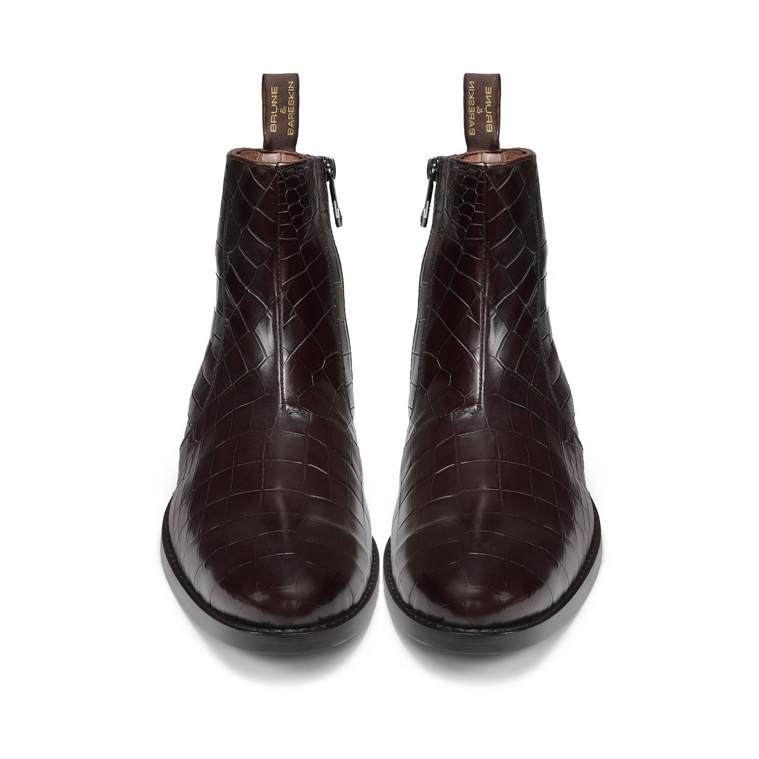 Dark Brown Deep Cut Croco Chelsea Boots For Men