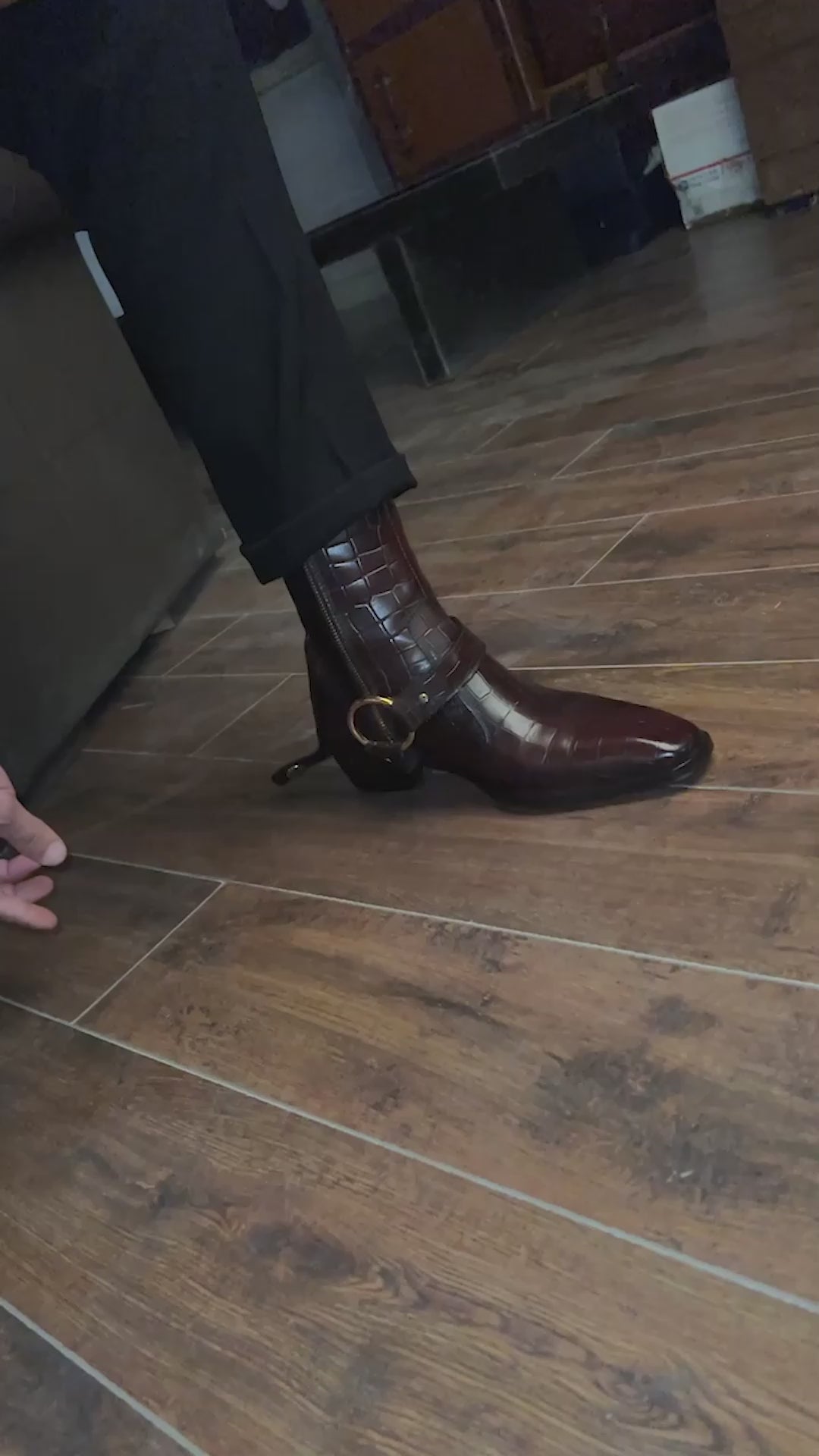 Finding shoes that spell your style, besides being comfortable to wear is definitely a challenge. However, if the shoes are made by BRUNE & BARESKIN, you can be sure to find the perfect blend of comfort and style. Ankle boot in leather are a dream come true for many a fashion-aware executives. We craft these high ankle dark brown leather boots to give you an elite look. The greater detailing of the side zipper closure at the ankles lend a classy look to these deep cut croco leather formal shoes. Fixed Stylish buckles Straps around the ankle take care of the appropriate fit and comfort. These deep cut croco print genuine leather ankle-length shoes are fitted to emphasize the size and shape of your feet to perfection. These boots provide the distinct and sassy look. They are easy to team with formal trousers as they blend well with the classic fabrics as well as the modern blended synthetic fabric pants, slacks and trousers. The leather sole adds the extra elegance to it. You can customize this chic boots in any of your favorite color with our bespoke services.