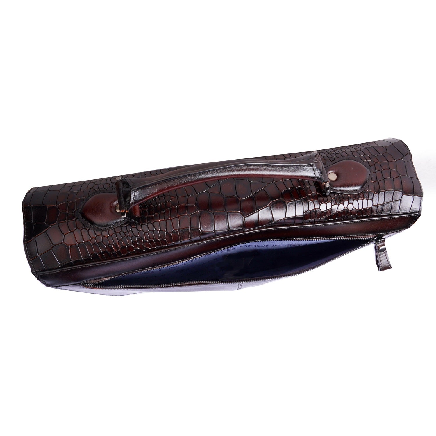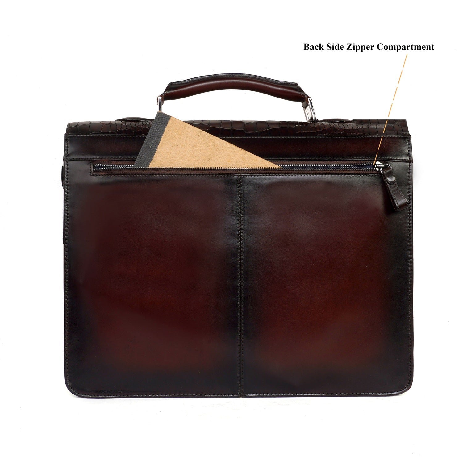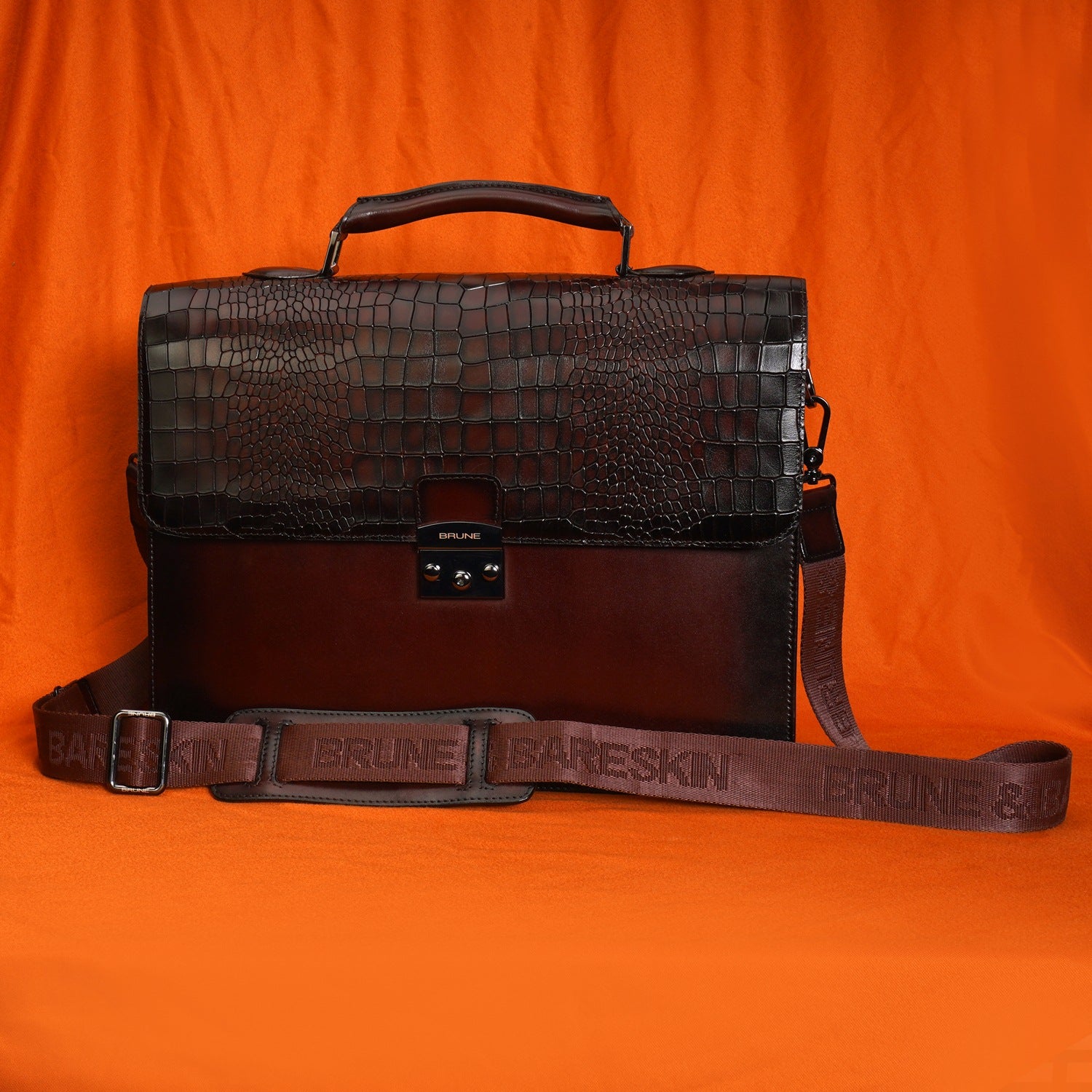 Dark Brown Deep Cut Croco Leather Laptop Briefcase